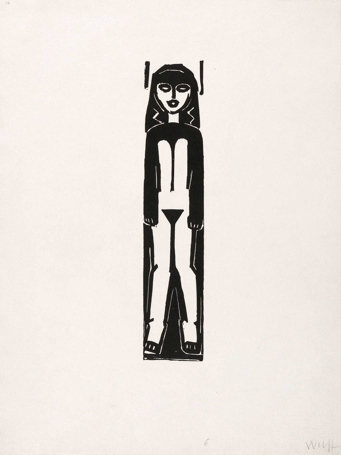 Holthusen 35. Söhn HDO 72713. – Aus: Die Schaffenden (Berlin: Euphorion-Verlag 1922/1923), Bd. 4. – In der Blattecke rechts unten in Bleistift signiert: ″Wolff″. Links unten Trockenstempel: ″EUPHORION VERLAG″. – Ein Exemplar von 125 handsignierten Abzügen für den IV. Jahrgang der Mappe ″Die Schaffenden″ (Berlin: Euphorion-Verlag 1922/23). – Unbeschnittenes originalrandiges Exemplar. Unscheinbar fleckig. Guter Zustand.