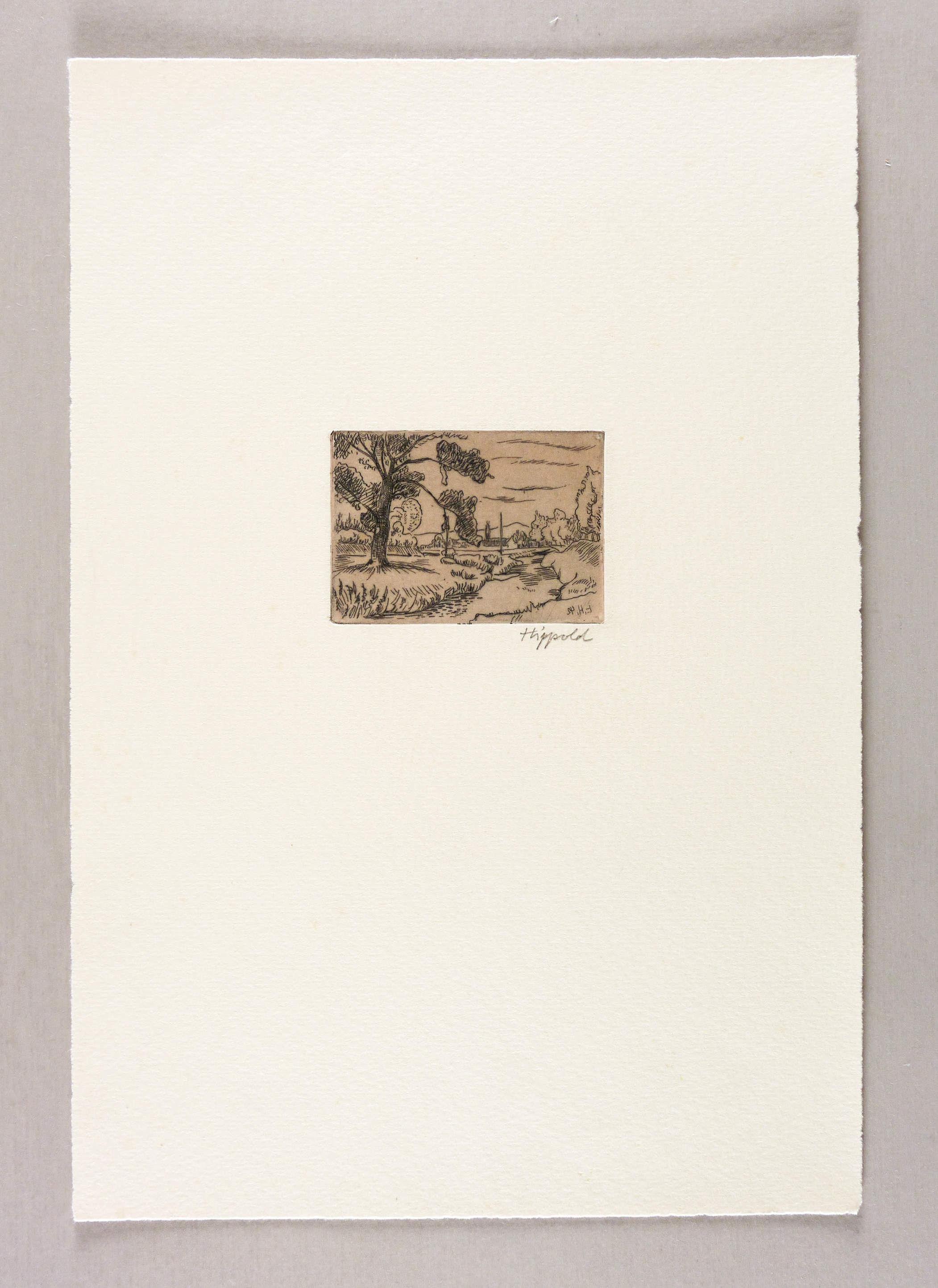 1942. Radierung / Kaltnadel, in Schwarzviolett, mit Plattenton, auf hellem Velin. – Originale Künstlergrafik, von Erhard Hippold. – 5,6 x 7,8 cm (Darstellung / Platte), 33 x 22 cm (Blatt).