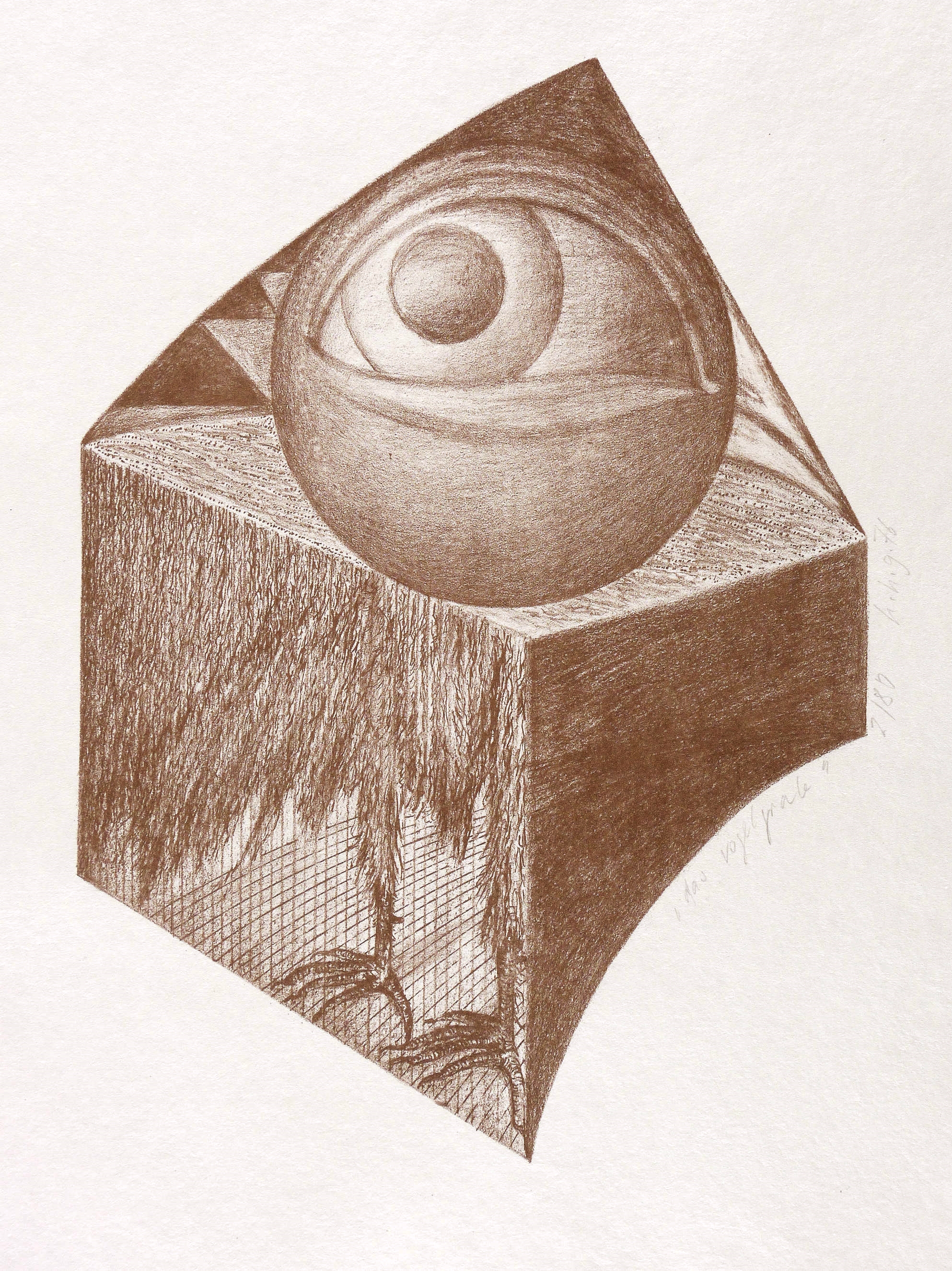 Aus: Falko Behrendt u.a., Imagination Format (Dresden: eikon Grafik-Presse 1976). – Am rechten Darstellungsrand in Bleistift betitelt, signiert und datiert: ″das vogelgrab // 2/80 // h.h.g. 76″. – Blatt Nr. 5 aus der Mappe ″Imagination Format″ der eikon Grafik-Presse in Dresden. – Tadellos. Sehr guter Zustand.