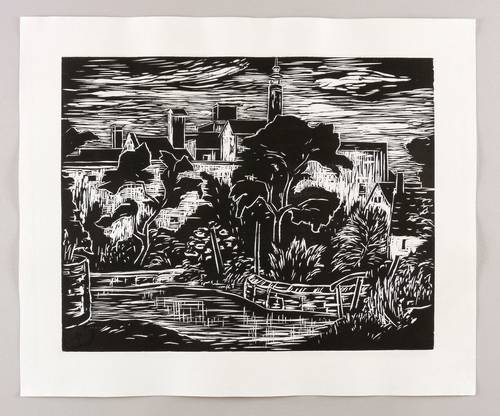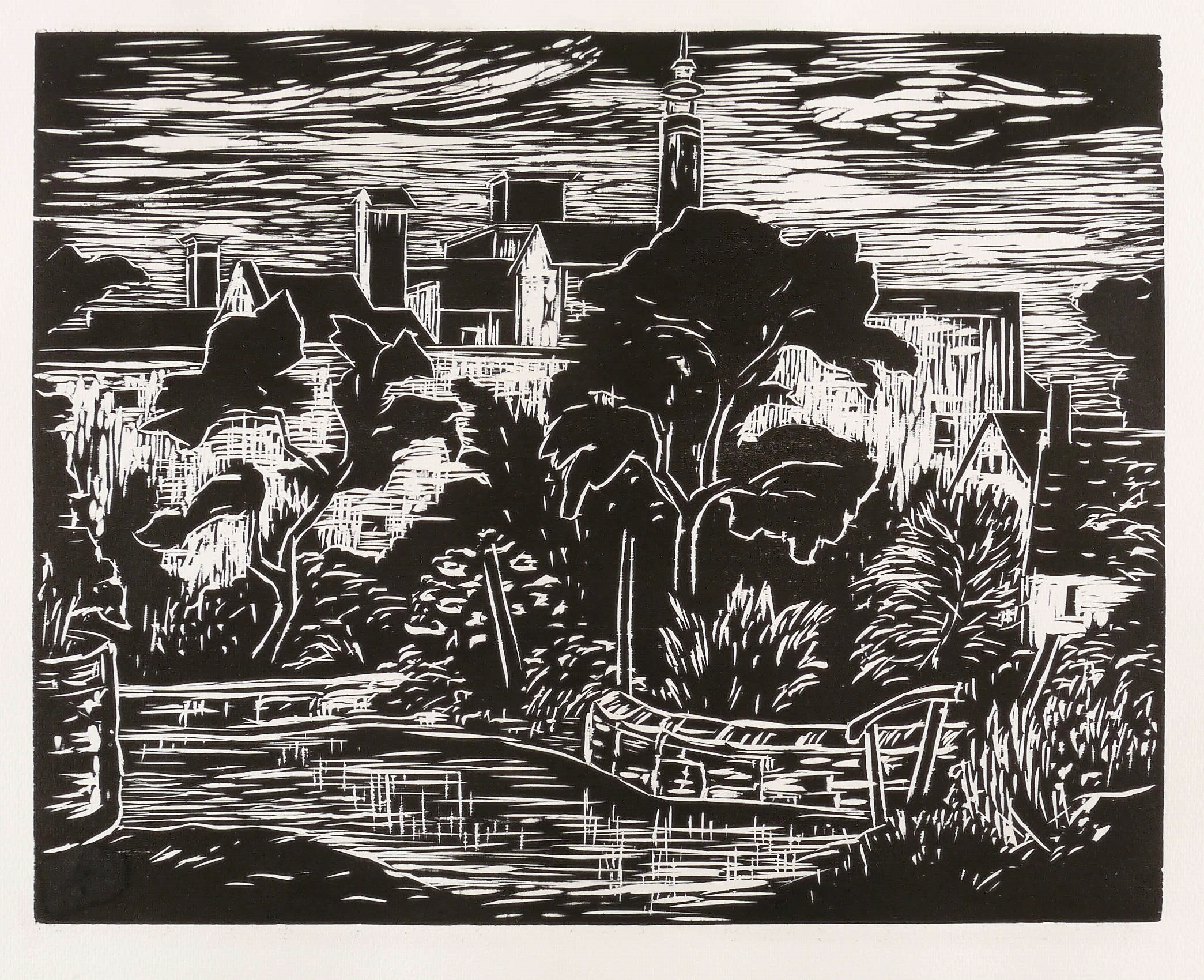 1950-1960. Holzschnitt, in Schwarz, auf genarbtem hellem Velinkarton. – Originale Künstlergrafik, von Ruth Meier. – 39,0 x 49,2 cm (Darstellung / Druckstock), 50 x 60 cm (Blatt).