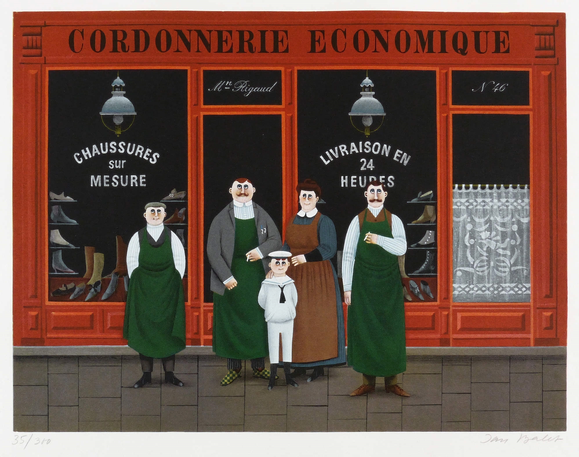 Balet, Jan. – Schaufenster. – „Cordonnerie Economique (Schuhmacher - Maßschuhe)”.