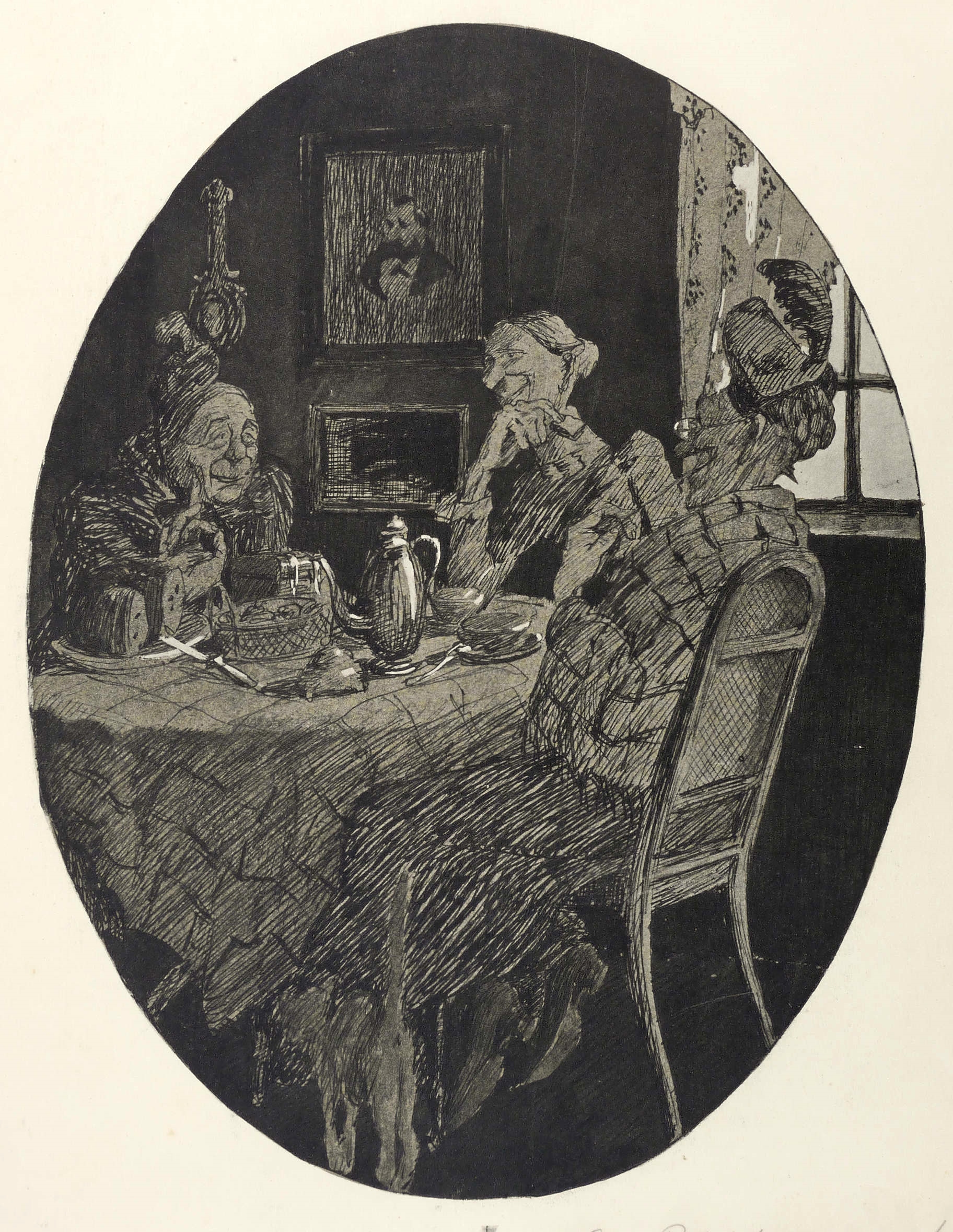 Wilke, Erich. – „Drei Damen beim Kaffeeklatsch”.