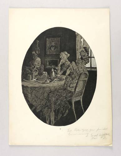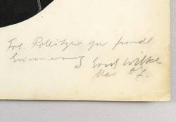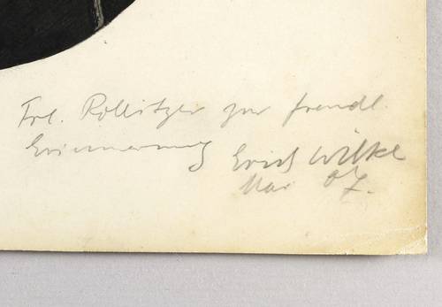 Rechts unten in Bleistift signiert und datiert: ″Erich Wilke Mai 07″. Links darüber Widmung an: ″Frl. Rollitzer zur freundl. Erinnerung″. – Stärkere Lager- und Altersspuren. Blattecken gestaucht, partiell minimal fleckig. Insgesamt mäßig gut erhalten.