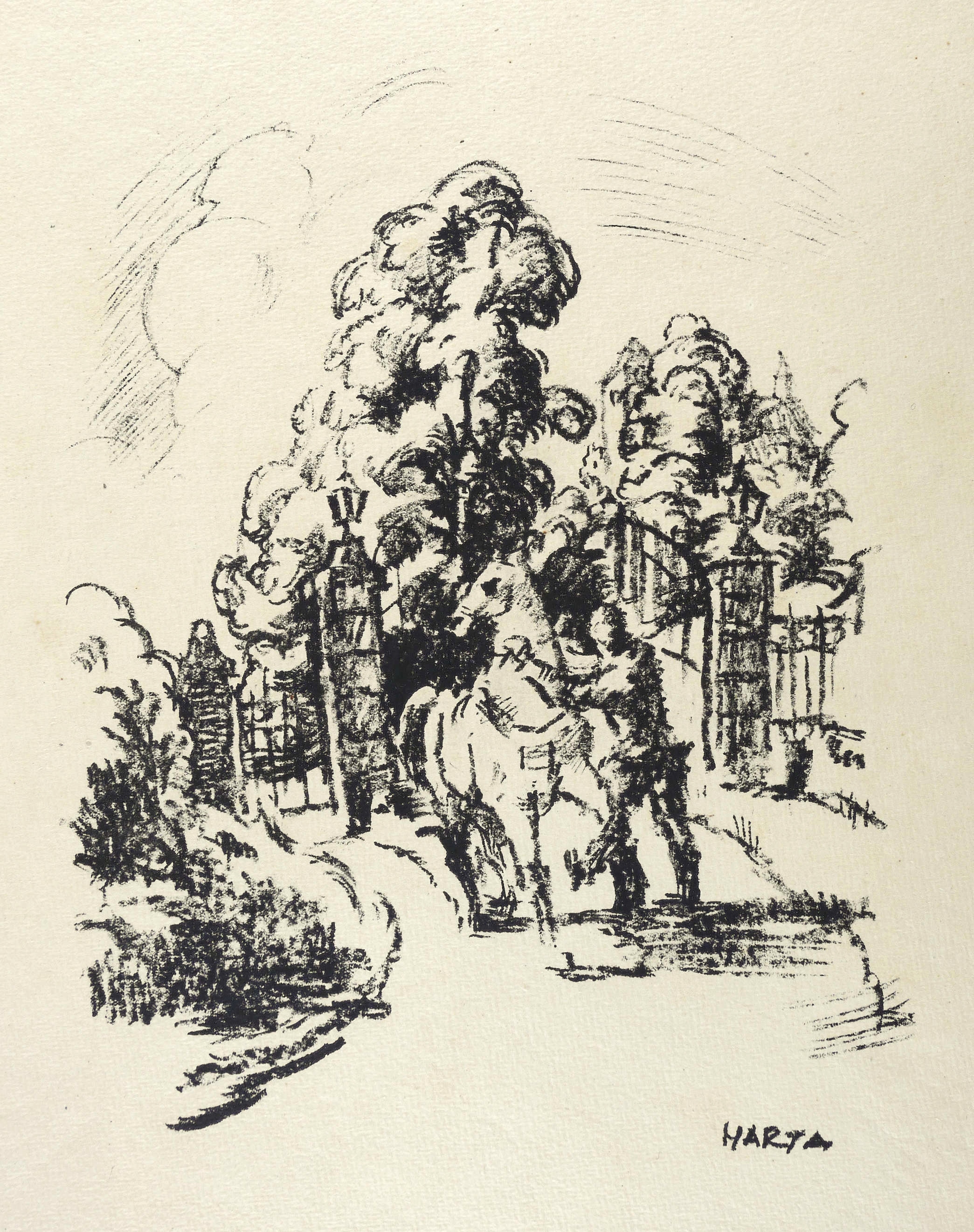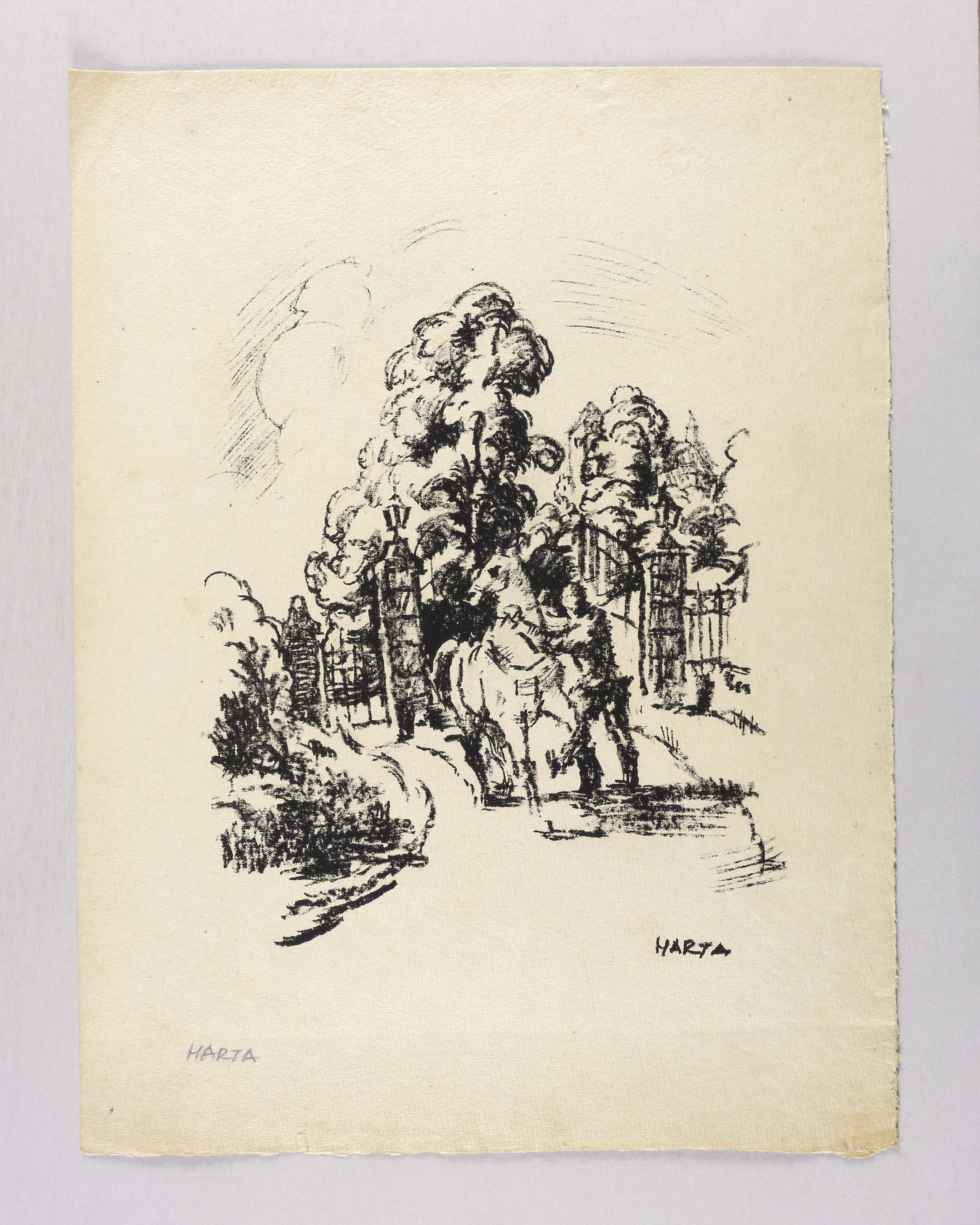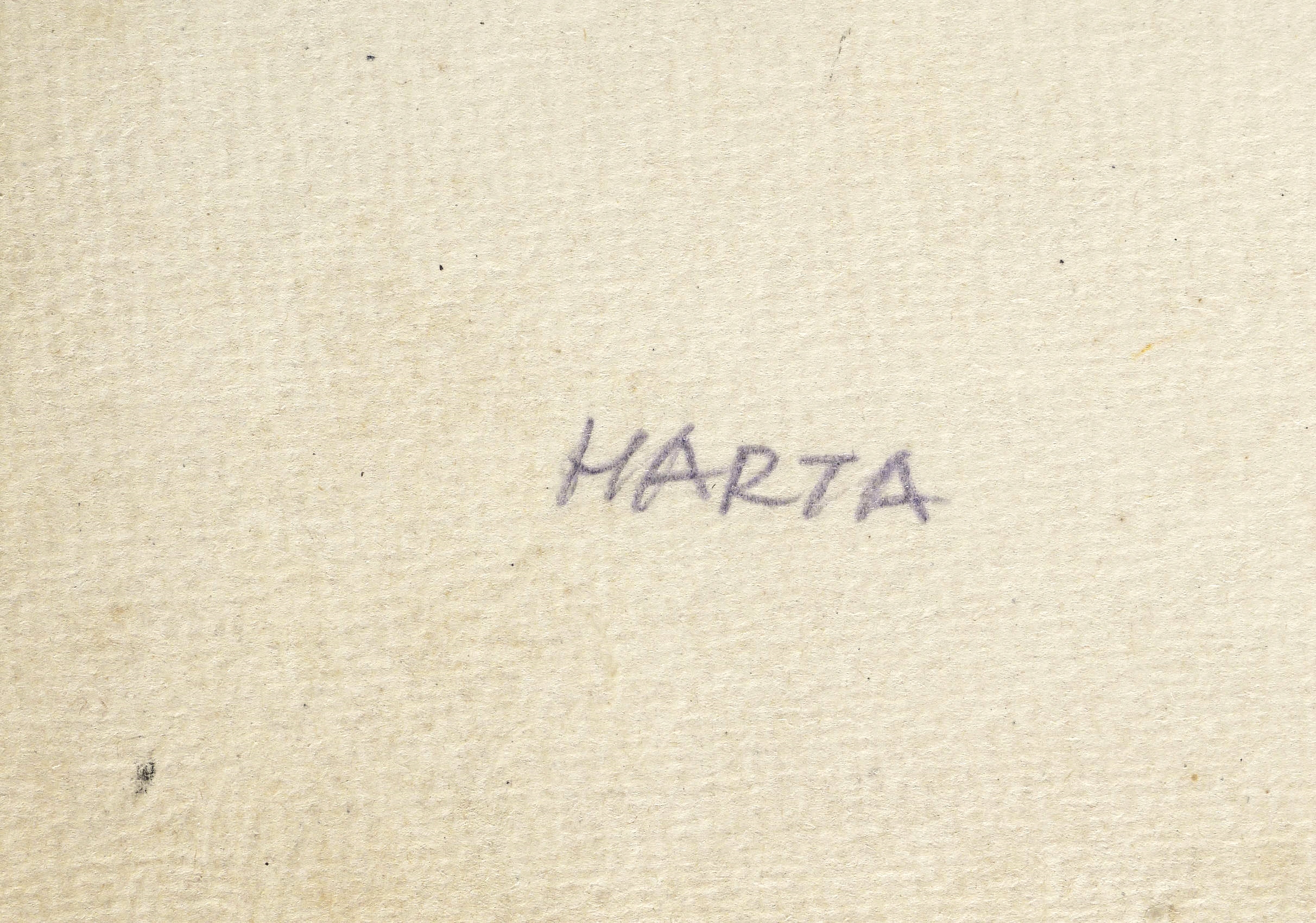 Aus: Die Graphischen Künste (Wien: Gesellschaft für Vervielfältigende Kunst 1920), Bd. 43. – Links unten in Kopierstift signiert: ″HARTA″. Im Stein rechts unten weitere Signatur: ″HARTA″. – Originalgrafische Beilage aus der signierten Vorzugsausgabe von ″Die graphischen Künste″ (XLIII, 1920). – Im Rand minimal gegilbt und etwas angeschmutzt. Unscheinbare Druckstellen. Insgesamt mäßig guter Zustand.
