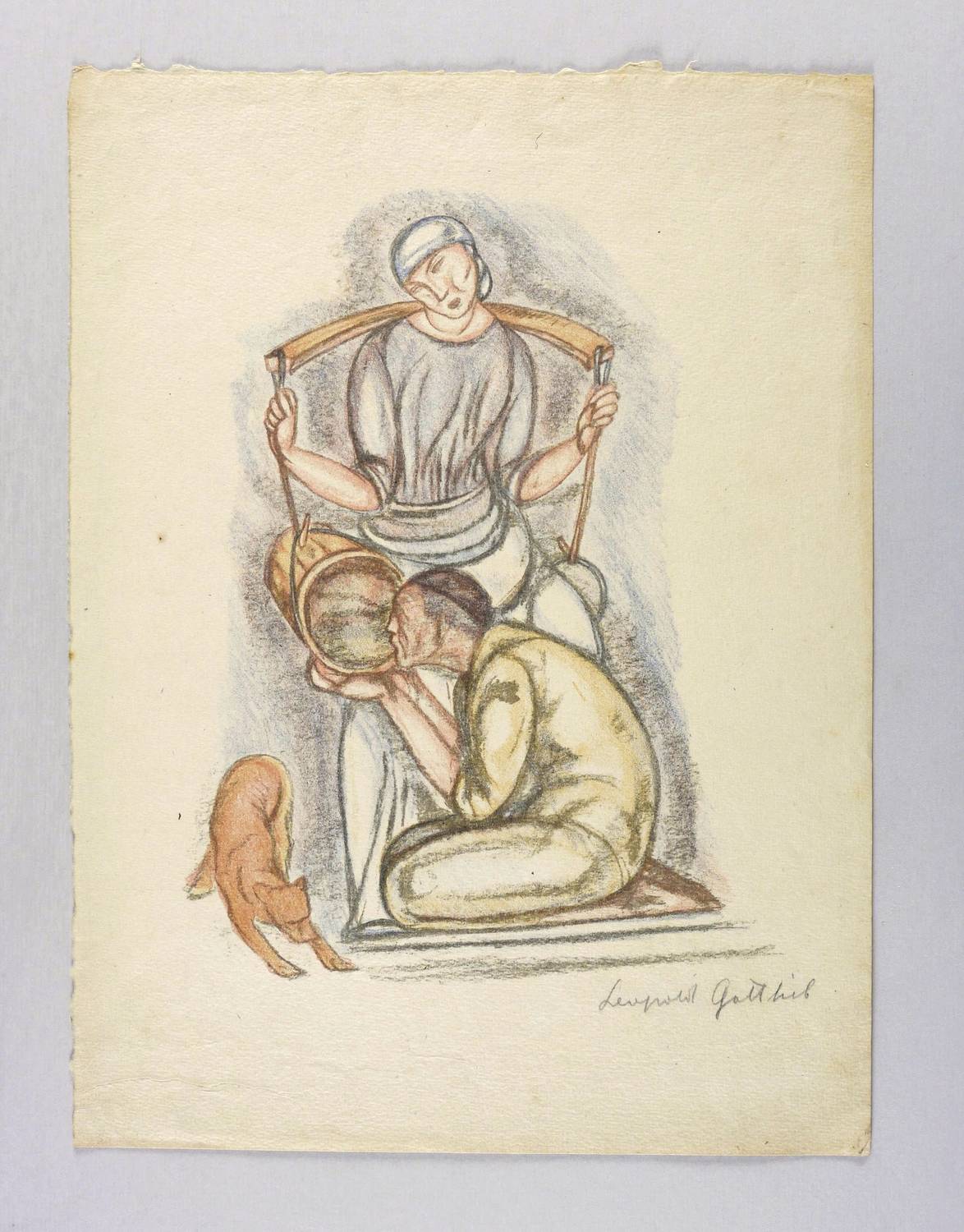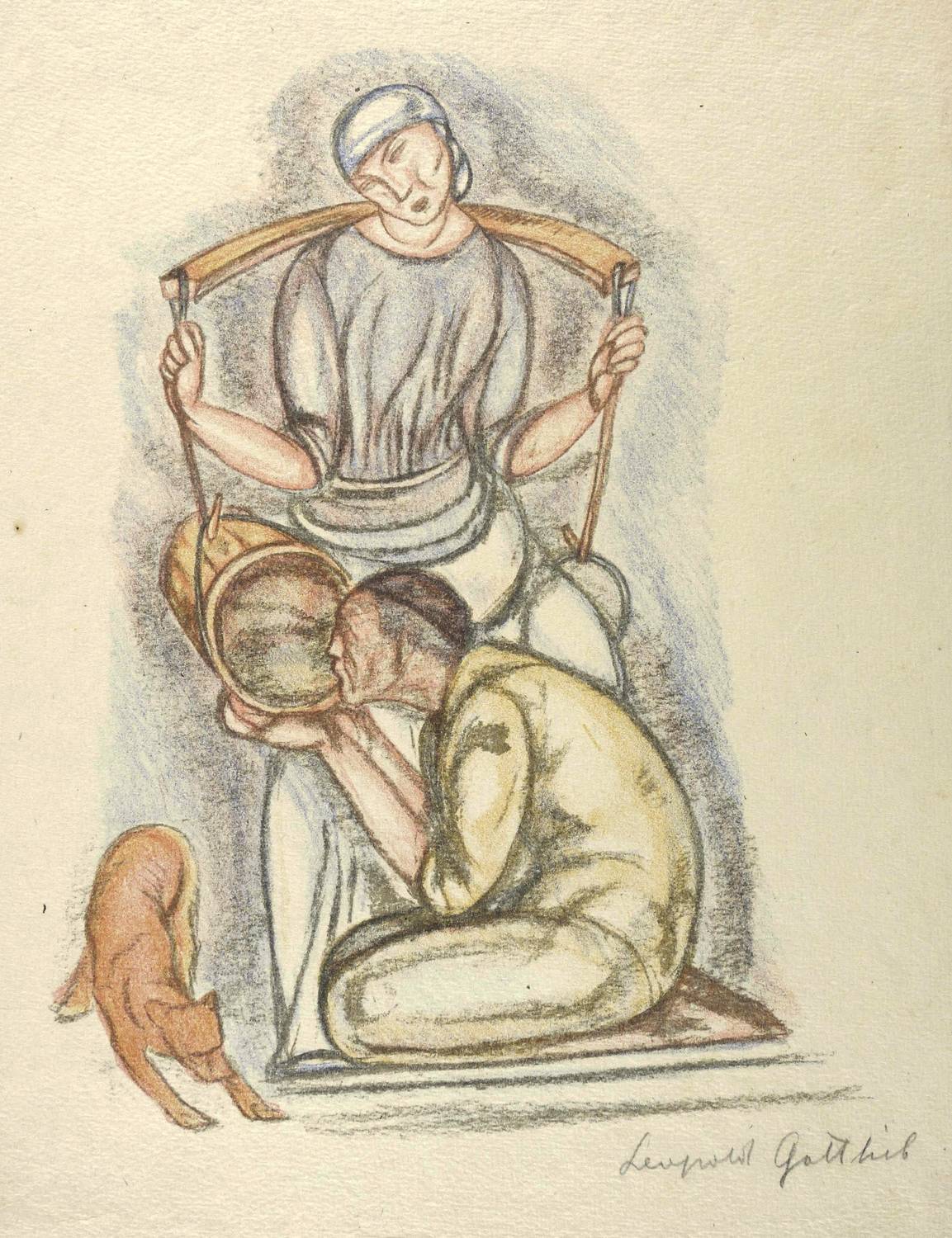 1918/1920. Farblithografie / Kreidelithografie, in 4 Farben, auf grobem gelblichem Bütten. – Originale Künstlergrafik, von Leopold Gottlieb. – 29,6 x 22,7 cm (Darstellung / Druckbild), 41 x 30 cm (Blatt).
