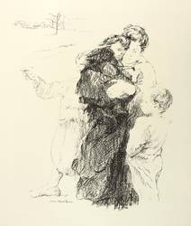 Aus: Krieg und Kunst. Original-Steinzeichnungen der Berliner Sezession (Berlin: Julius Bard 1915). – Nicht handsigniert. Im Stein links unten signiert: ″A.E. Herstein″. Am Blattrand rechts unten typografisch bezeichnet ″Ad. Ad. Herstein: Obdachlose″. Links unten Vignette der Berliner Secession. – Papier etwas gegilbt. Leichte Knickspuren. Guter Zustand.