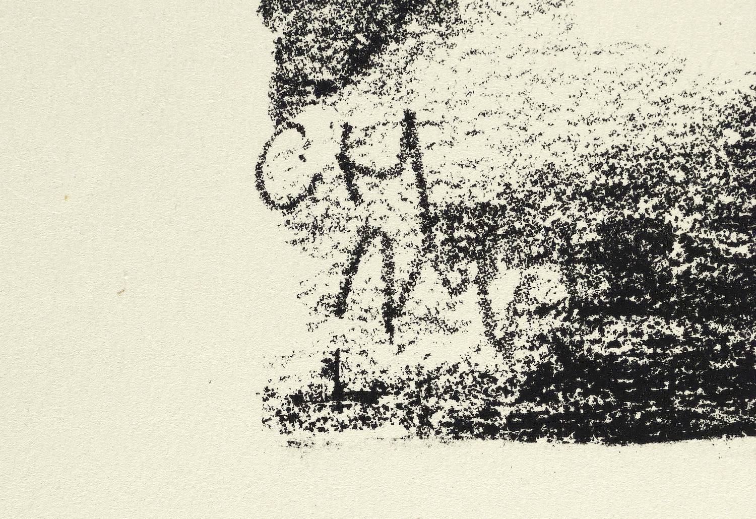 1915. Lithografie / Kreidelithografie, in Schwarz, partiell geschabt, auf weichem gelblichem Maschinenpapier. – Originale Künstlergrafik, von Curt Hasenohr-Hoelloff. – 22,7 x 27,5 cm (Darstellung / Druckbild), 34 x 42 cm (Blatt).
