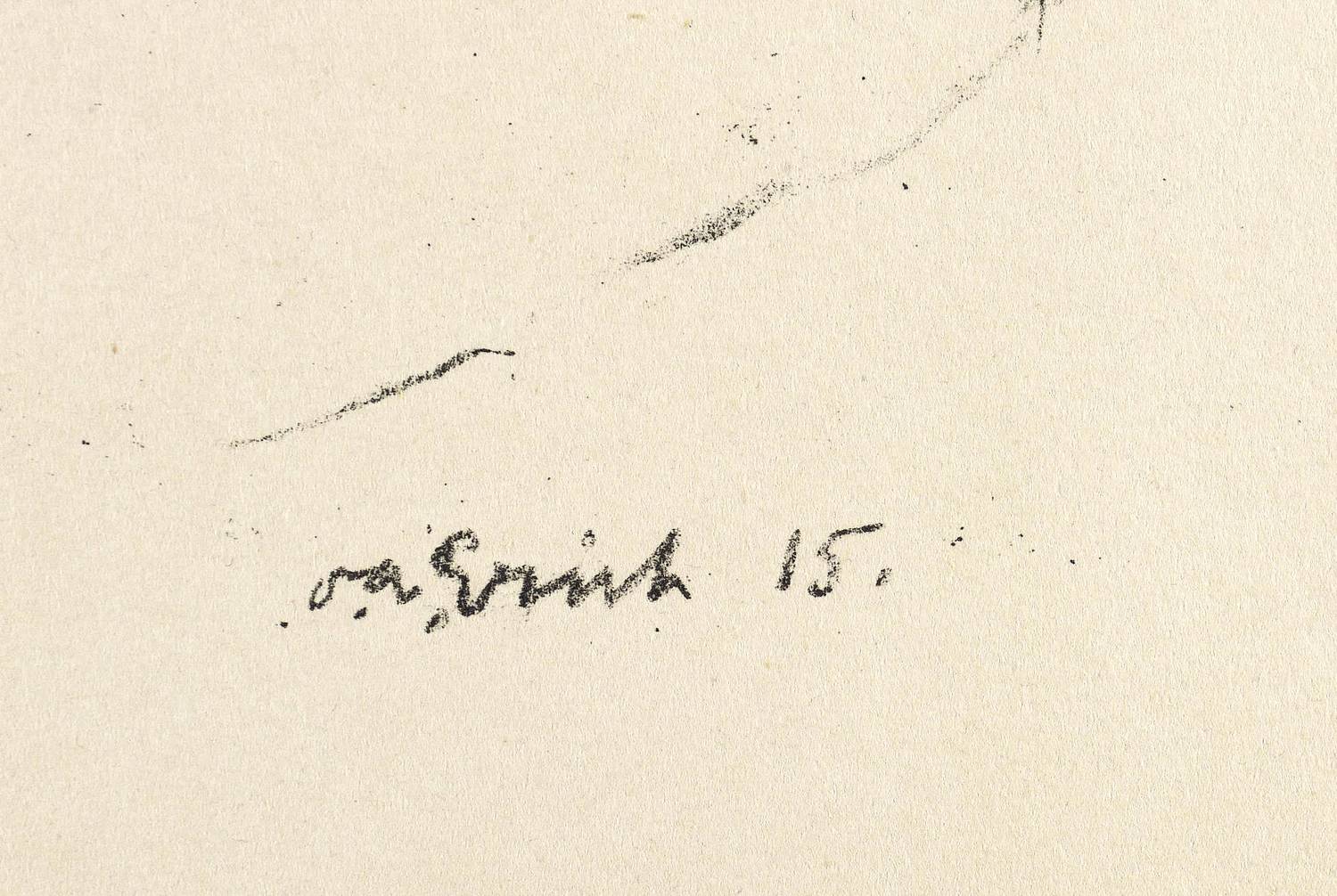 1915. Lithografie / Kreidelithografie, in Schwarz, auf weichem gelblichem Maschinenpapier. – Originale Künstlergrafik, von Oswald Adolf Erich. – 20,7 x 29,0 cm (Darstellung / Druckbild), 34 x 42 cm (Blatt).