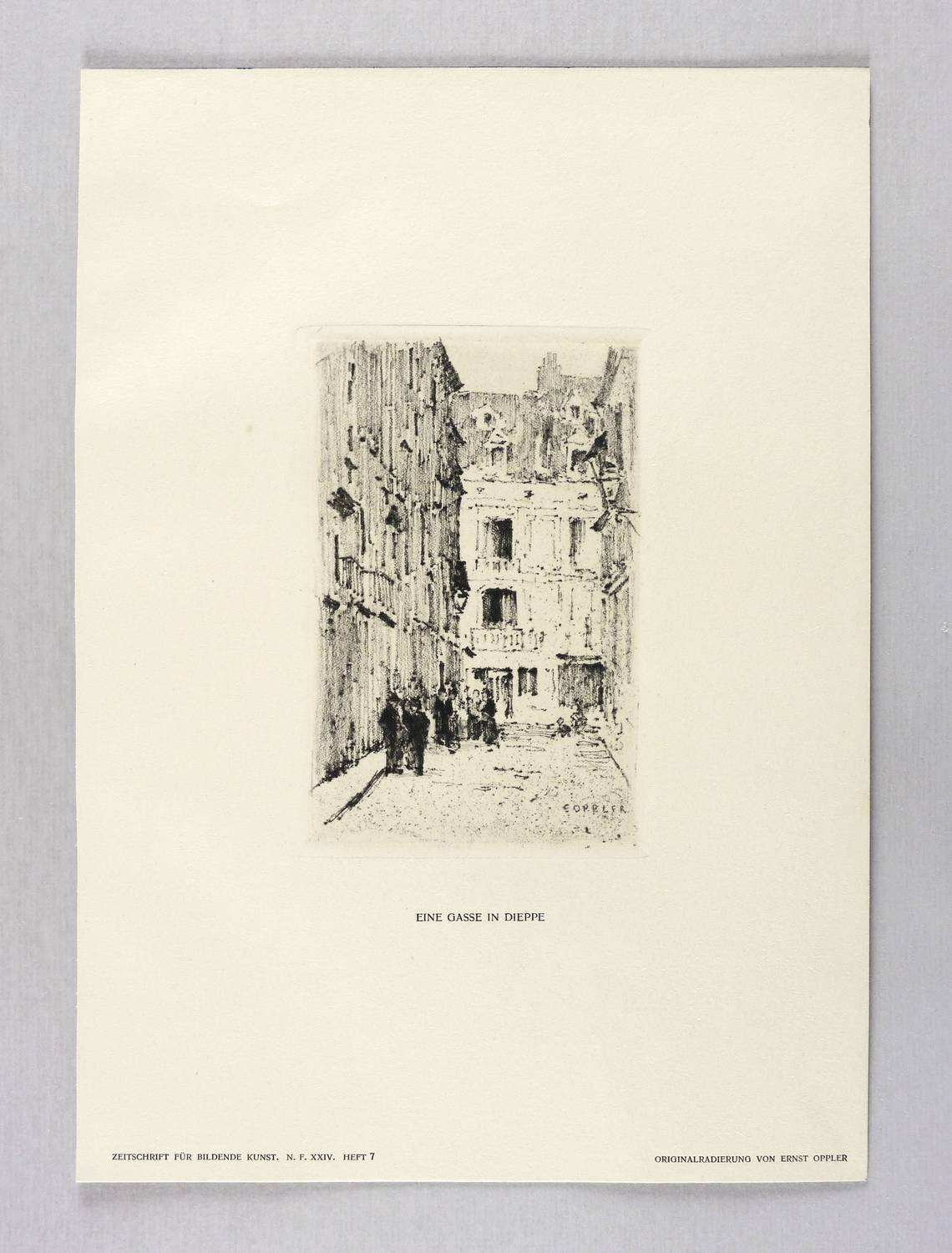 Aus: Zeitschrift für bildende Kunst (Leipzig: E.A. Seemann 1913), Bd. 24. – Nicht handsigniert. In der Platte rechts unten signiert: ″E. OPPLER″. Unterhalb der Darstellung typografisch bezeichnet: ″RUSSISCHES BALLETT. // ORIGINALRADIERUNG VON ERNST OPPLER″. Links Bandangabe. – Sehr guter Zustand.