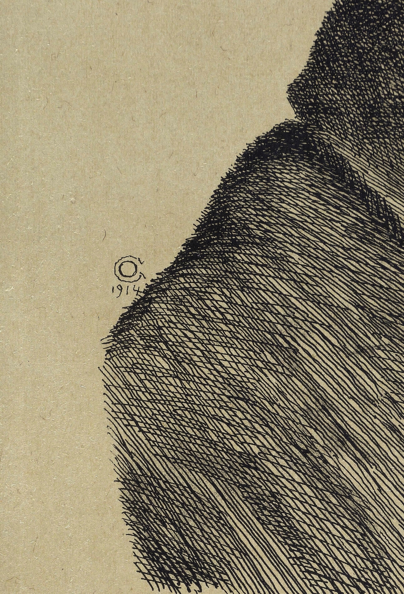 1914. Lithografie / Federlithografie, in Schwarz, auf glattem hellbraunem Papier. – Originale Künstlergrafik, von Otto Greiner. – 24,2 x 19,6 cm (Darstellung / Druckbild), 33 x 24 cm (Blatt).