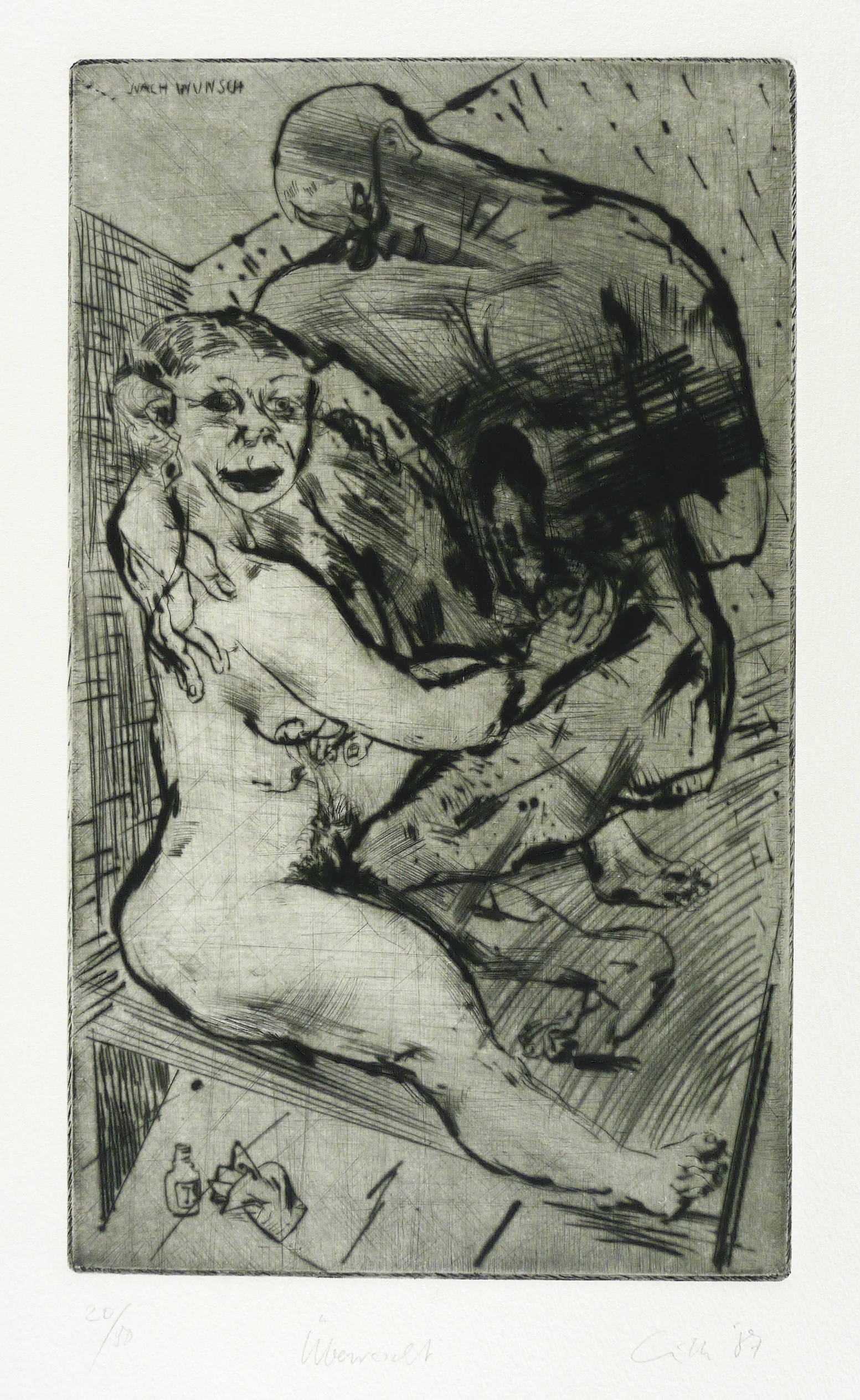 Rechts unten in Bleistift signiert und datiert: ″Gille 87″. Links Auflagenbezeichnung und Titel. In der Platte links oben bezeichnet: ″Nach Wunsch″. – Tadellos. Sehr guter Zustand.
