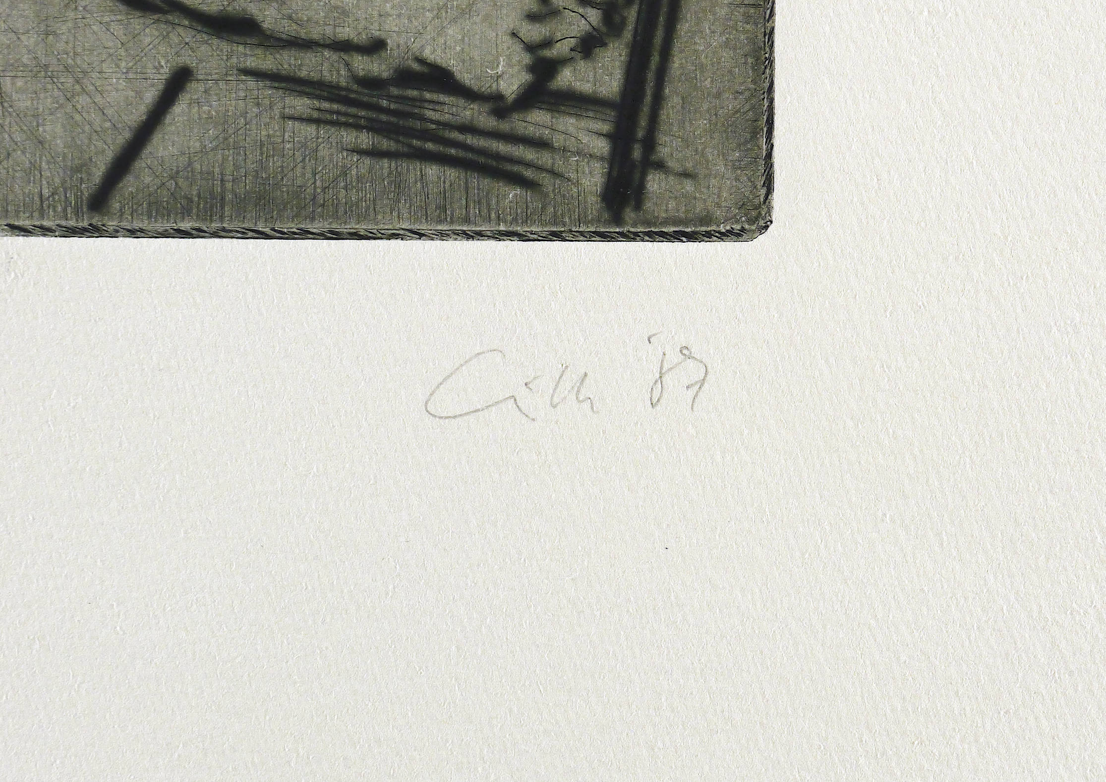 1987. Radierung / Kaltnadel, mit Plattenton, in Schwarz, auf hellchamois Hahnemühle. – Originale Künstlergrafik, von Sighard Gille. – Auflage Exemplar Nr. 20/50. – 31,1 x 18,5 cm (Darstellung / Platte), 48 x 35 cm (Blatt).