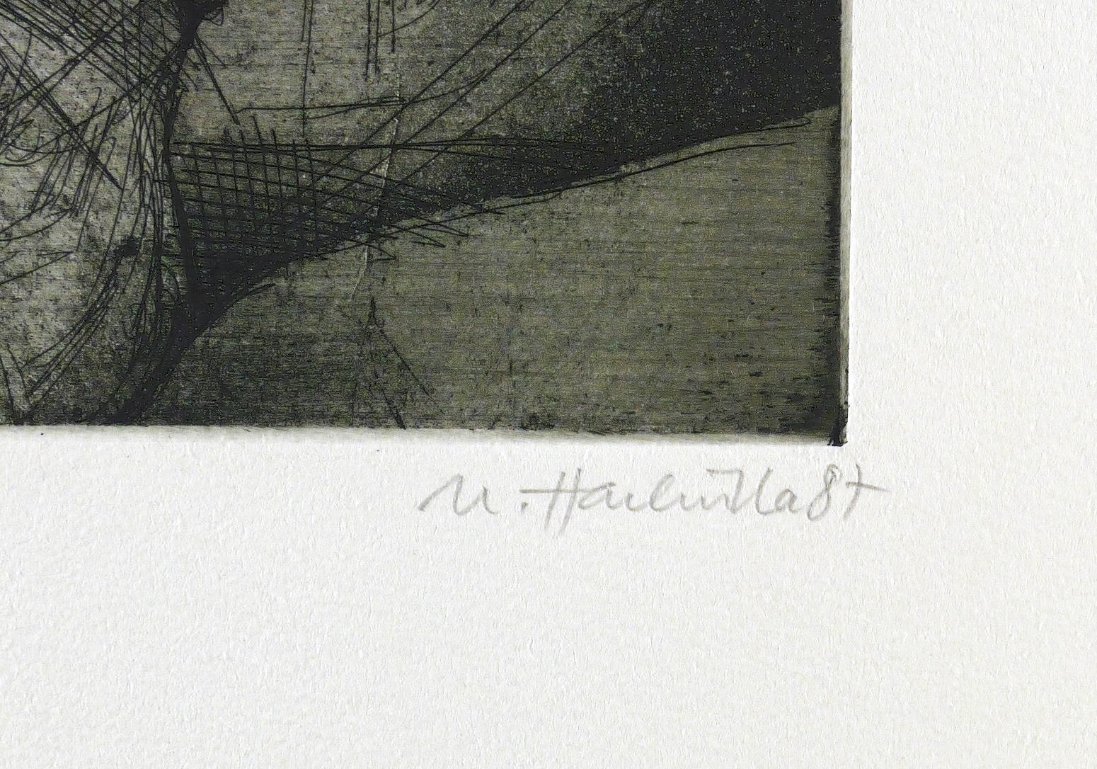 1987. Radierung / Strichätzung & Aquatinta, in Schwarz, auf schwerem hellchamois Büttenpapier. – Originale Künstlergrafik, von Ulrich Hachulla. – Auflage Exemplar Nr. 20/50. – 14,9 x 25,5 cm (Darstellung / Platte), 35 x 48 cm (Blatt).