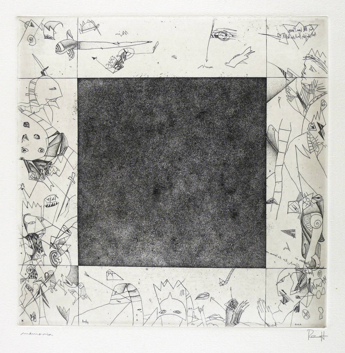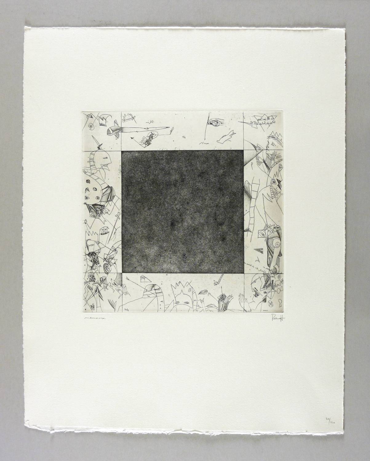 1983. Radierung / Strichätzung & Punzenstich, in Schwarz, auf Hahnemühle. – Originale Künstlergrafik, von Thomas Ranft. – Auflage Exemplar Nr. 32/120. – 24,7 x 24,7 cm (Darstellung / Platte), 50 x 40 cm (Blatt).