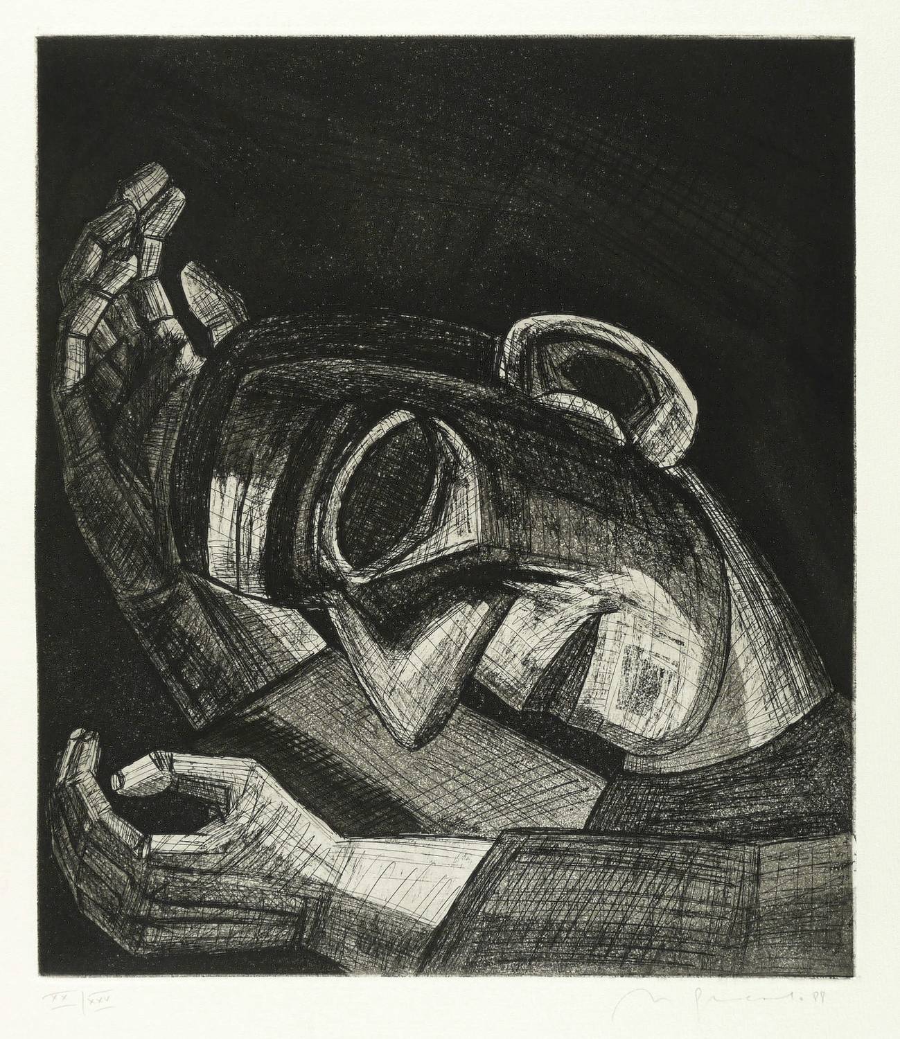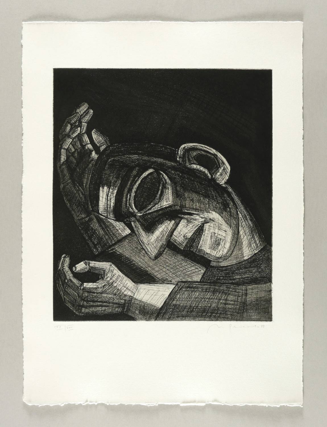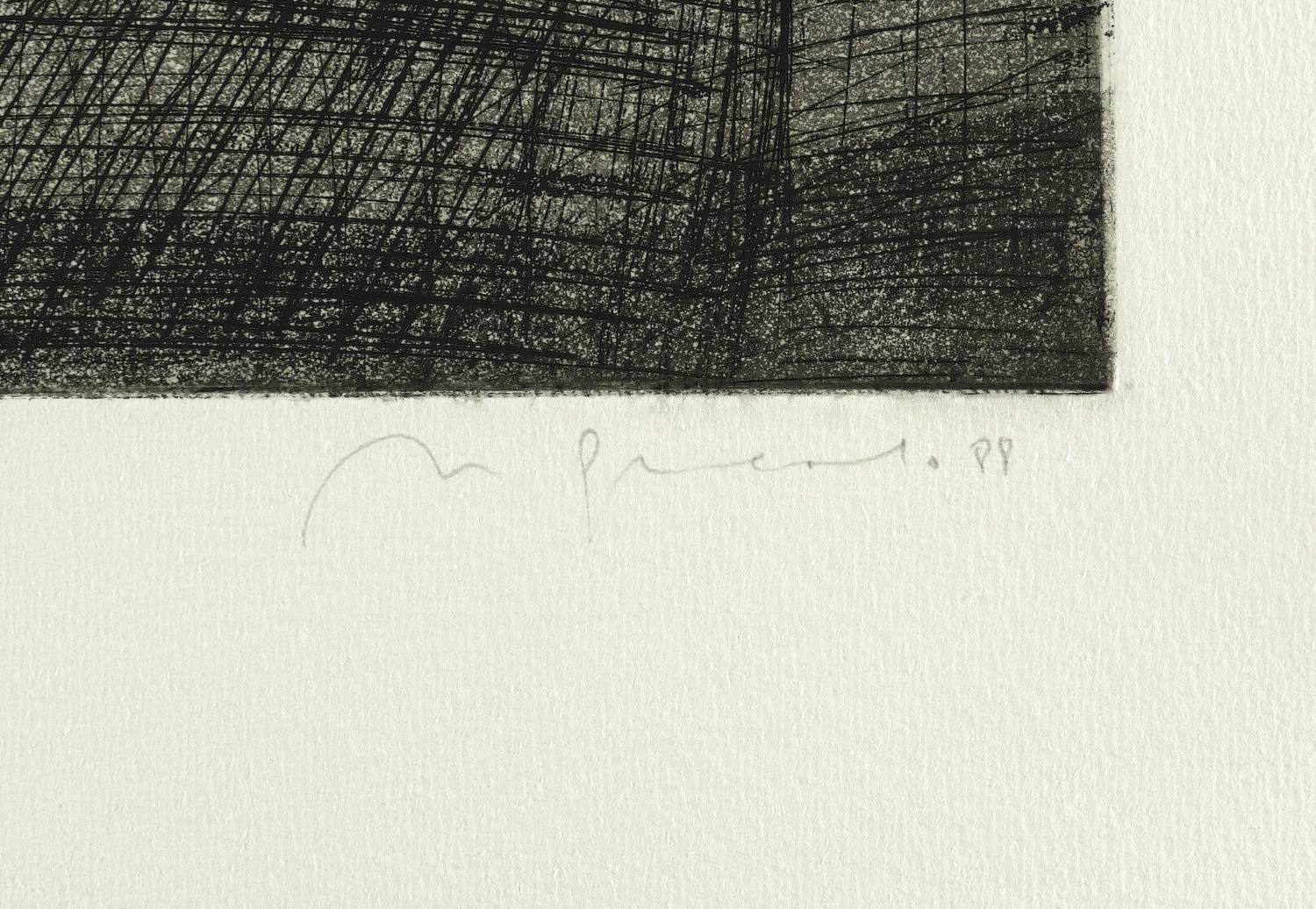 1988. Radierung / Aquatinta & Strichätzung, in Schwarz, auf schwerem hellchamois Hahnemühle. – Originale Künstlergrafik, von Nuria Quevedo. – Auflage Exemplar Nr. XX/XXV. – 35,4 x 30,8 cm (Darstellung / Platte), 54 x 40 cm (Blatt).