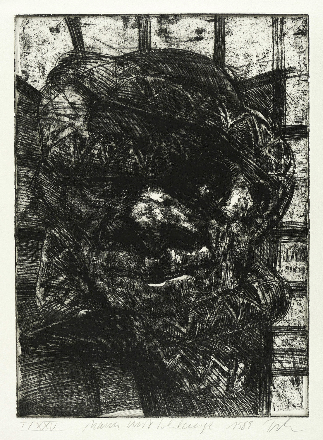 1989. Radierung / Vernis mou & Strichätzung, in Schwarz, auf schwerem hellchamois Hahnemühle. – Originale Künstlergrafik, von Hans Joachim Triebsch. – Auflage Exemplar Nr. I/XXV. – 44,2 x 32,2 cm (Darstellung / Platte), 54 x 40 cm (Blatt).