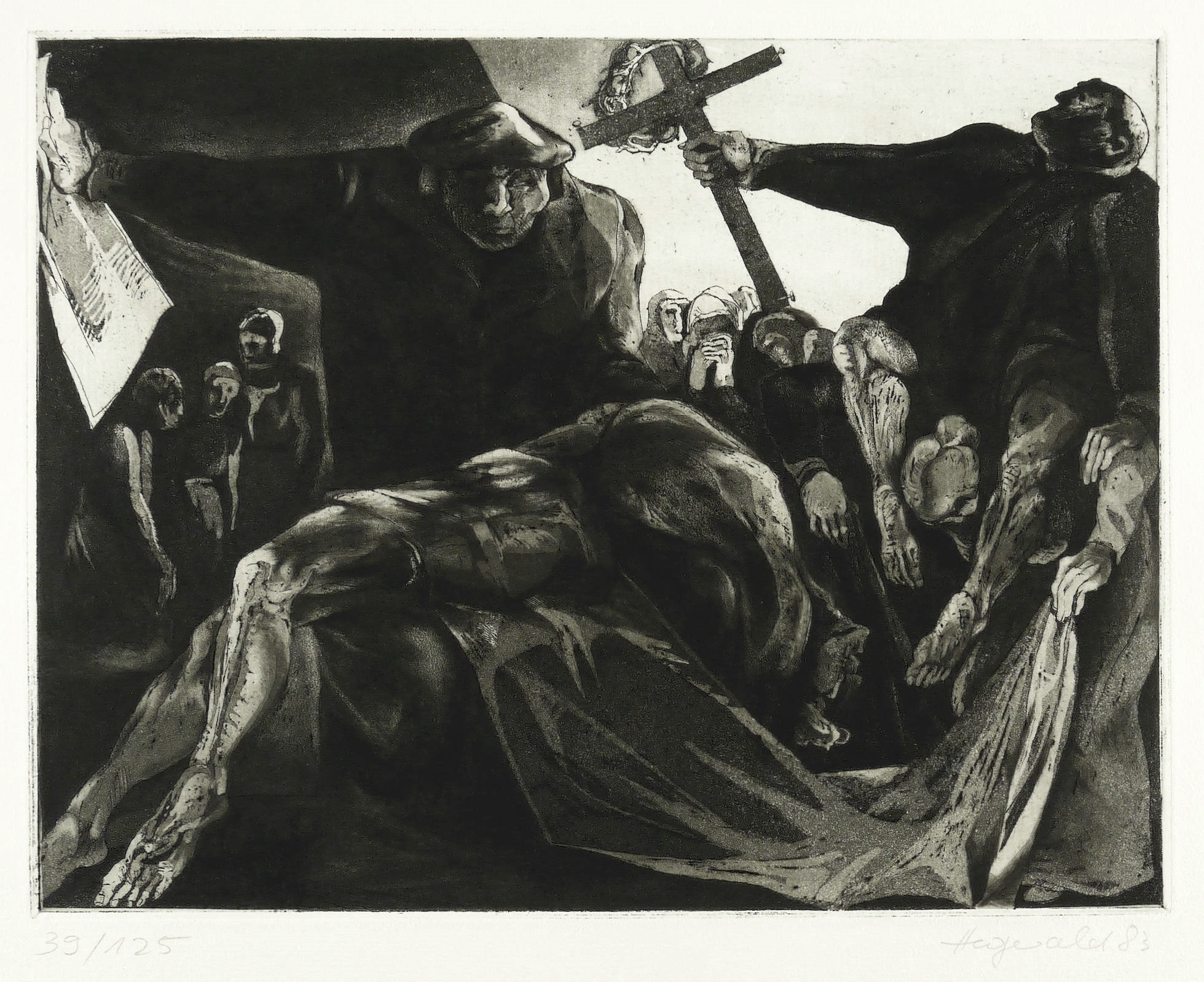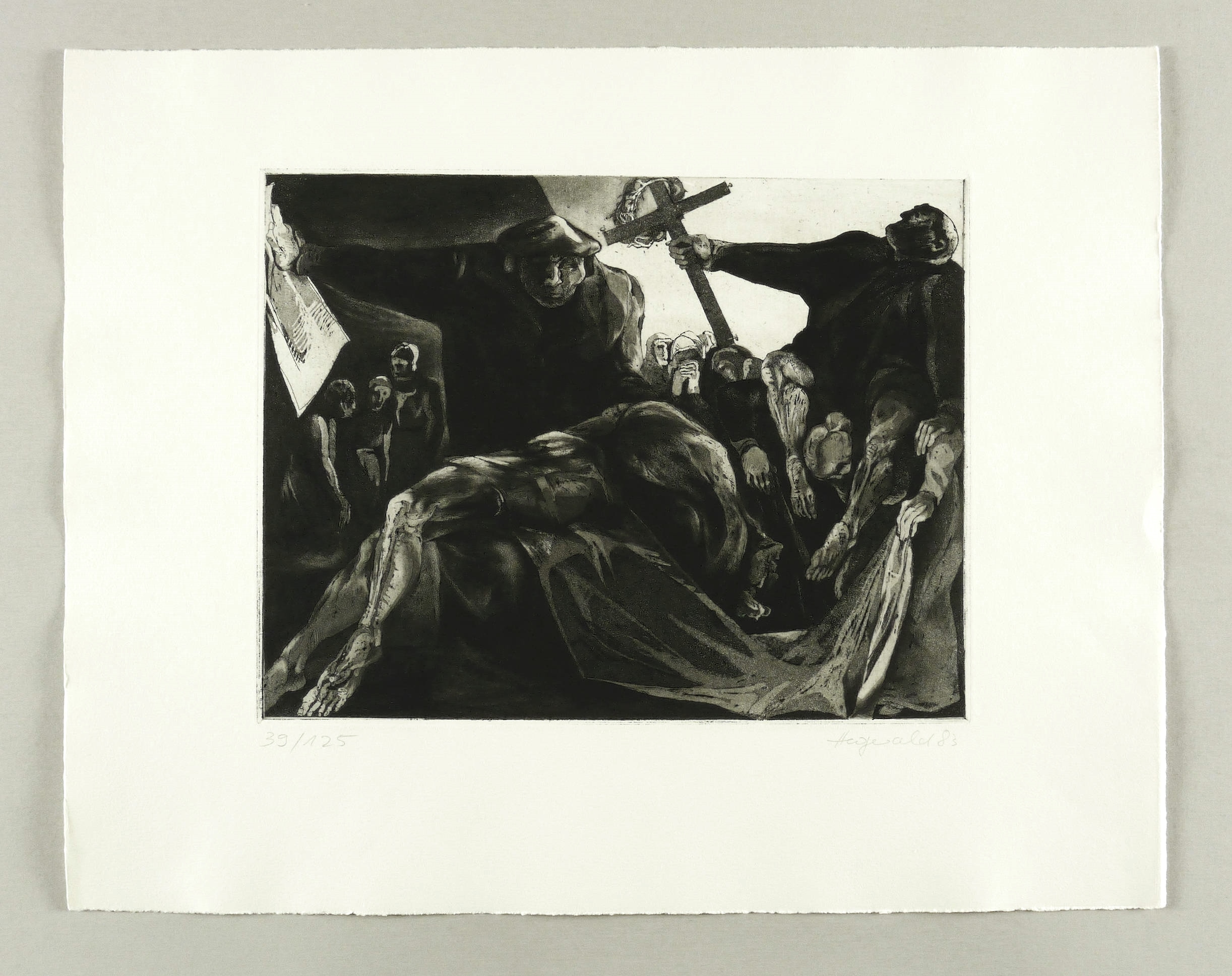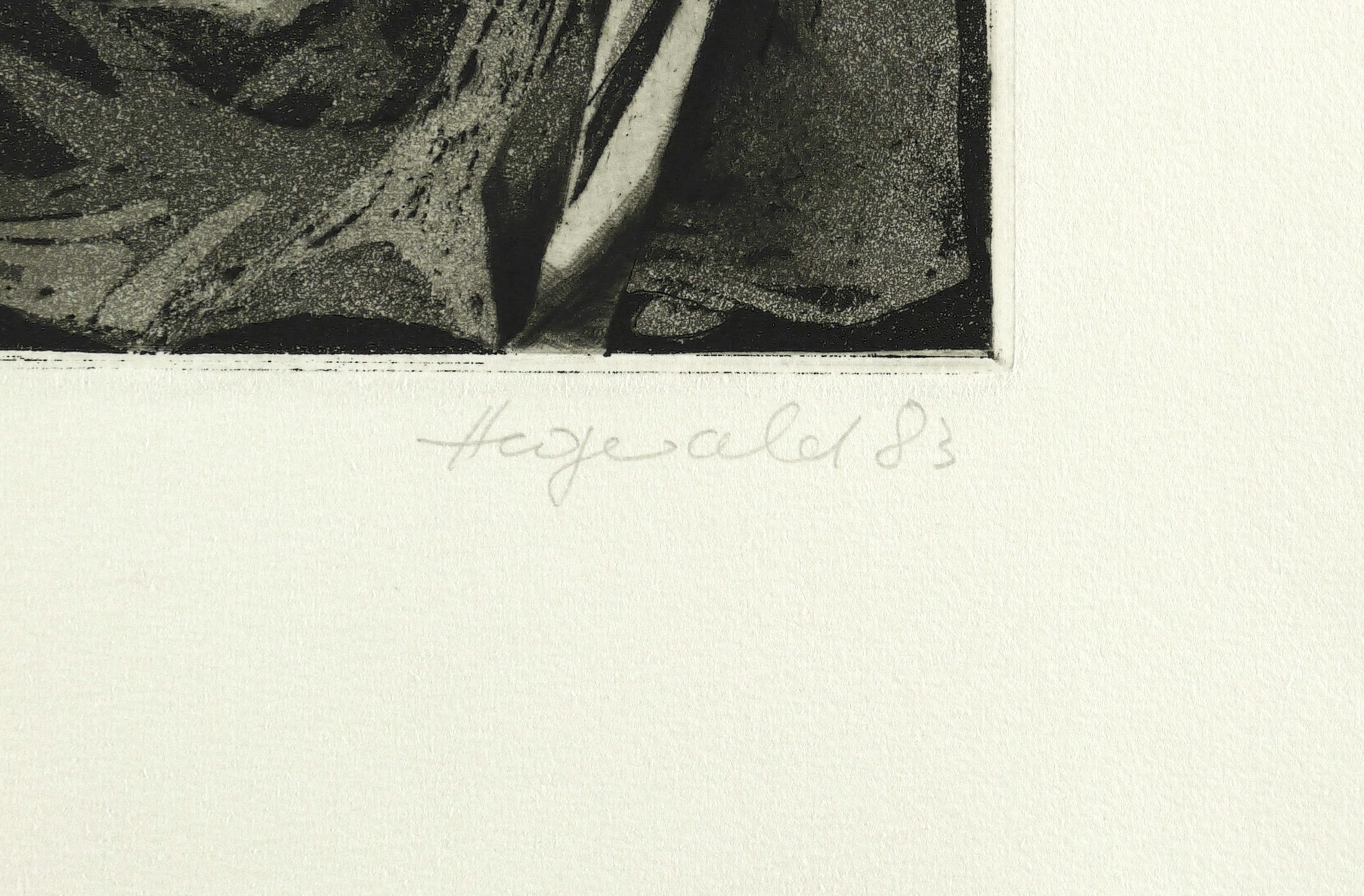 1983. Radierung / Aquatinta, in Schwarz, auf hellchamois Velinkarton. – Originale Künstlergrafik, von Heidrun Hegewald. – Auflage Exemplar Nr. 39/125. – 25,1 x 32,4 cm (Darstellung / Platte), 40 x 50 cm (Blatt).