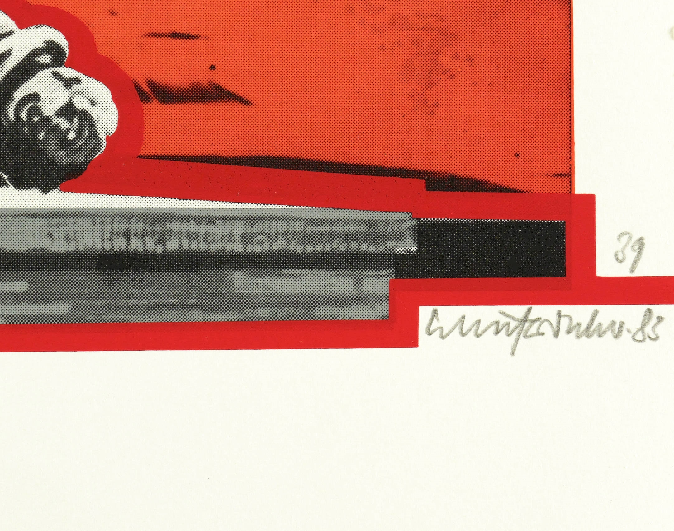 1983. Farbsiebdruck / Farbserigrafie, in 5 Farben, auf weißem Karton. – Originale Künstlergrafik, von Jürgen Schieferdecker. – Auflage Exemplar Nr. 39/100. – 50,4 x 40,1 cm (Darstellung / Blatt).