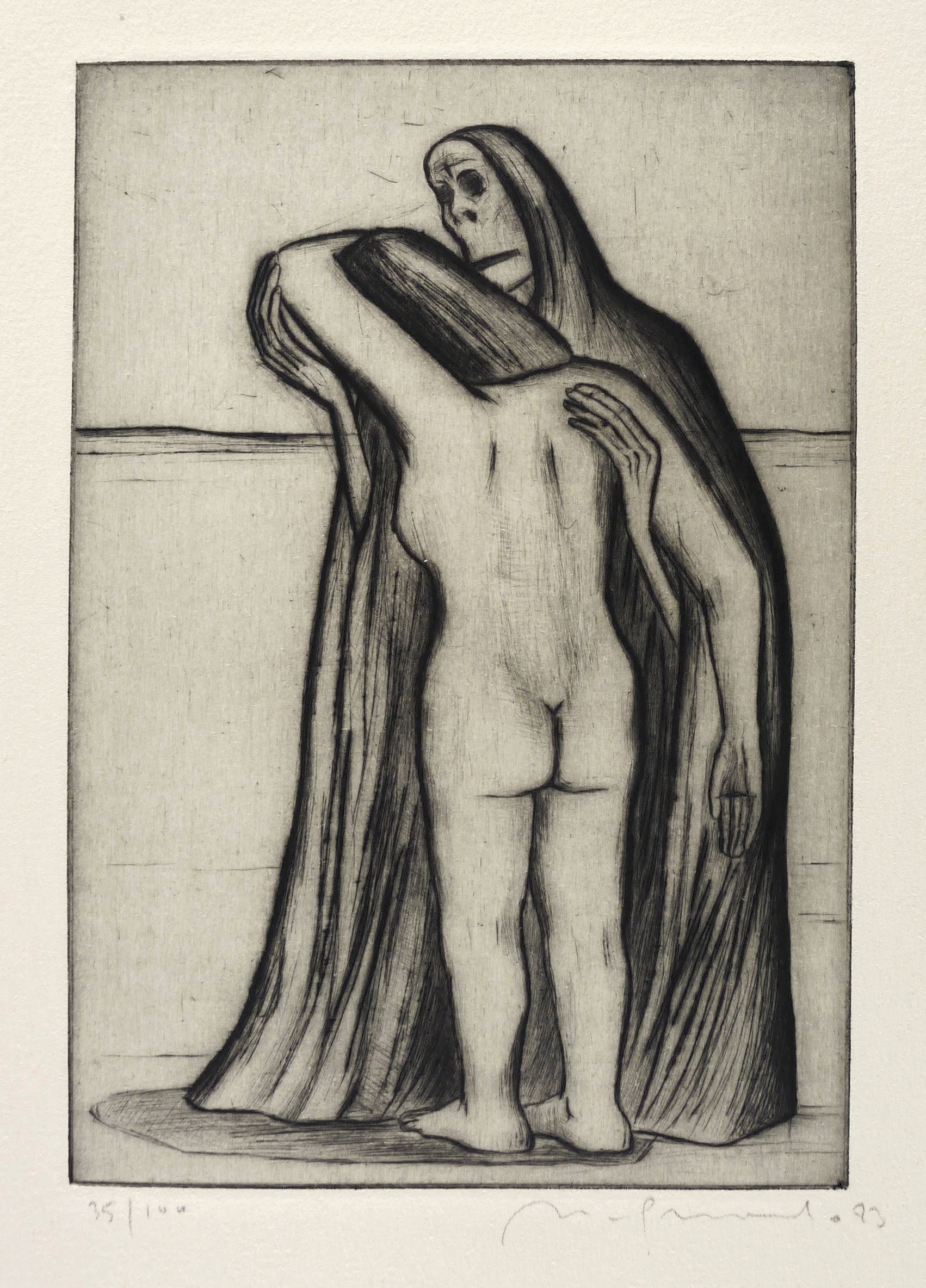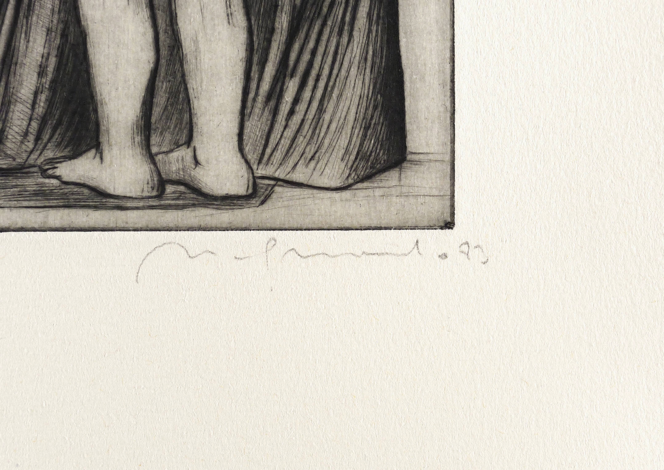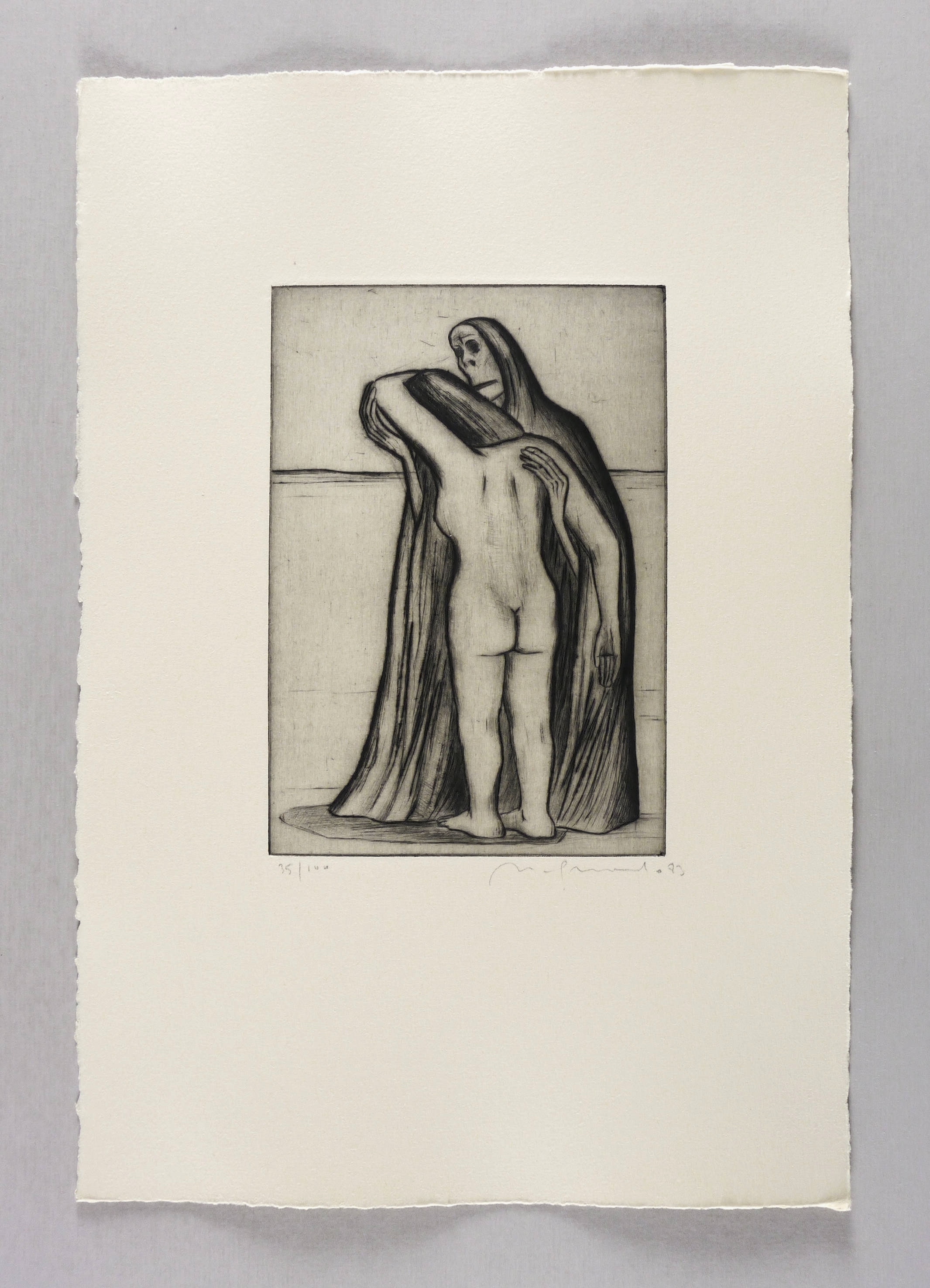 1983. Radierung / Kaltnadel, in Schwarz, mit Plattenton, auf chamois Hahnemühle. – Originale Künstlergrafik, von Nuria Quevedo. – Auflage Exemplar Nr. 35/100. – 19,9 x 13,8 cm (Darstellung / Platte), 40 x 27 cm (Blatt).