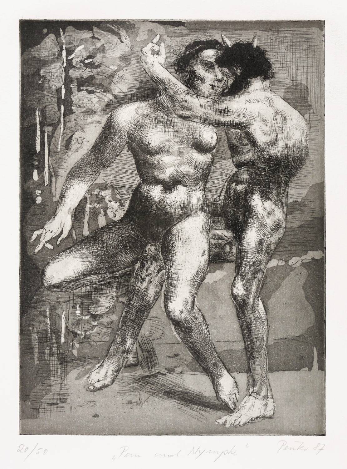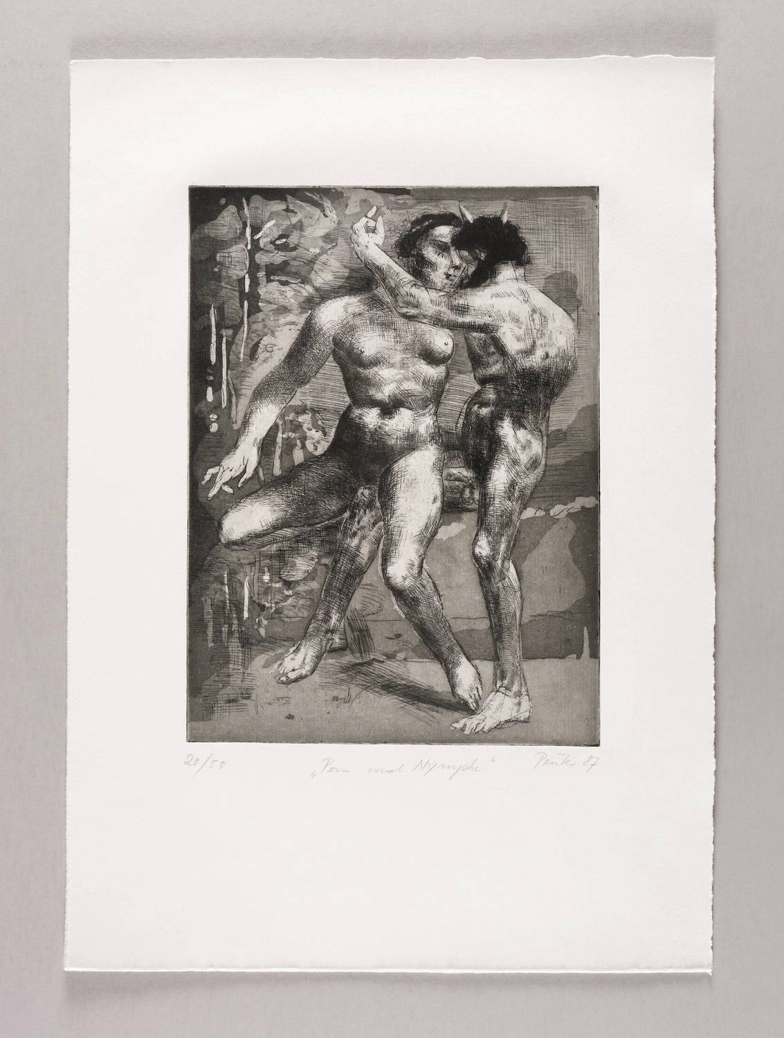 1987. Radierung / Strichätzung & Aquatinta, in Schwarz, auf festem hellchamois Hahnemühle. – Originale Künstlergrafik, von Wolfgang Peuker. – Auflage Exemplar Nr. 20/50. – 29,7 x 22,0 cm (Darstellung / Platte), 49 x 35 cm (Blatt).