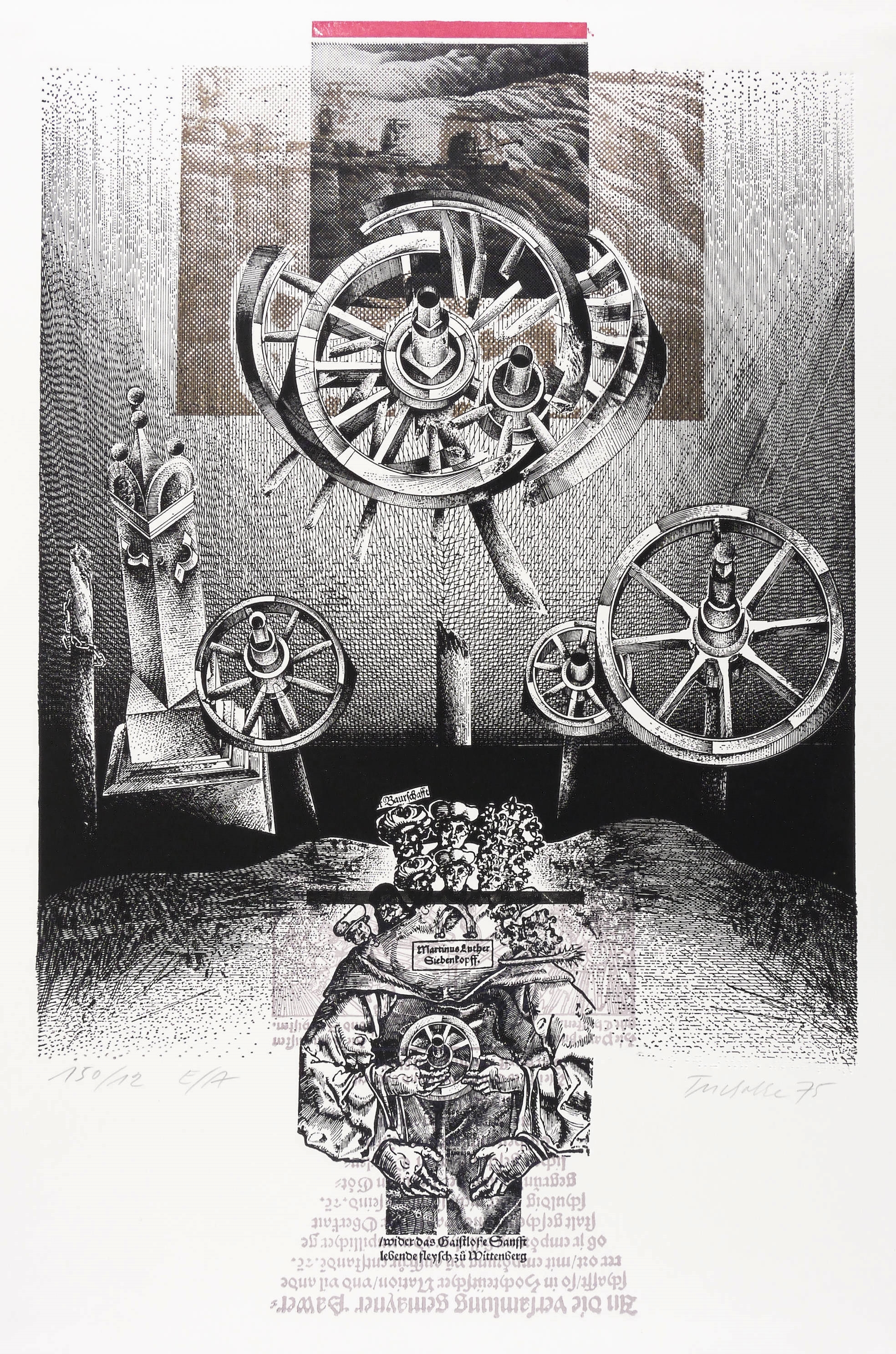 Aus: Grafik. Zum 450. Jahrestag des Deutschen Bauernkrieges 1975 (Berlin: Ministerium für Kultur der DDR 1975). – Rechts unten in Bleistift signiert und datiert: ″Tucholke 75″. Links Auflagenbezeichnung. In den Druckformen diverse Inschriften. – Rückseitig in den Blattecken leichte Montagespuren. Sehr guter Zustand.
