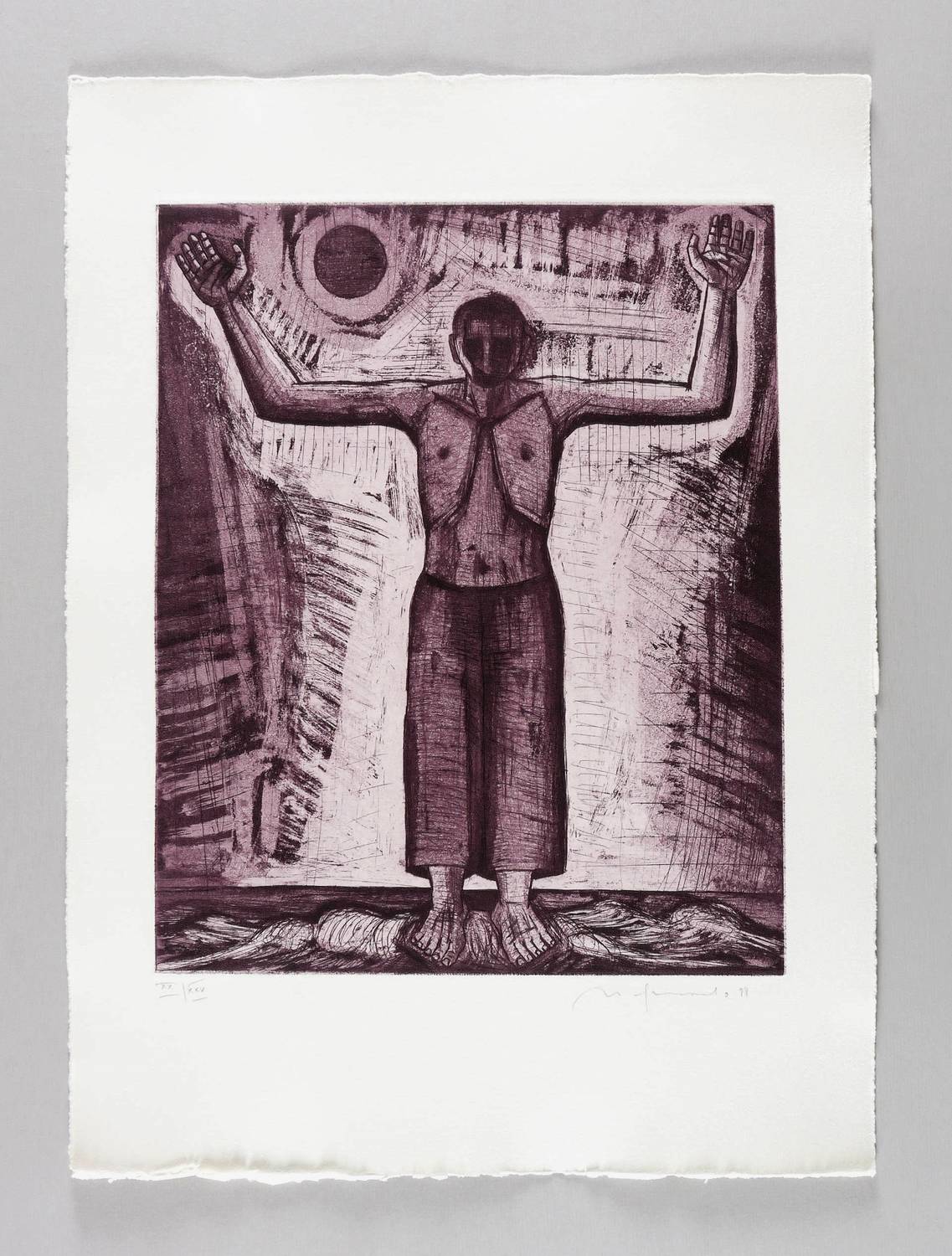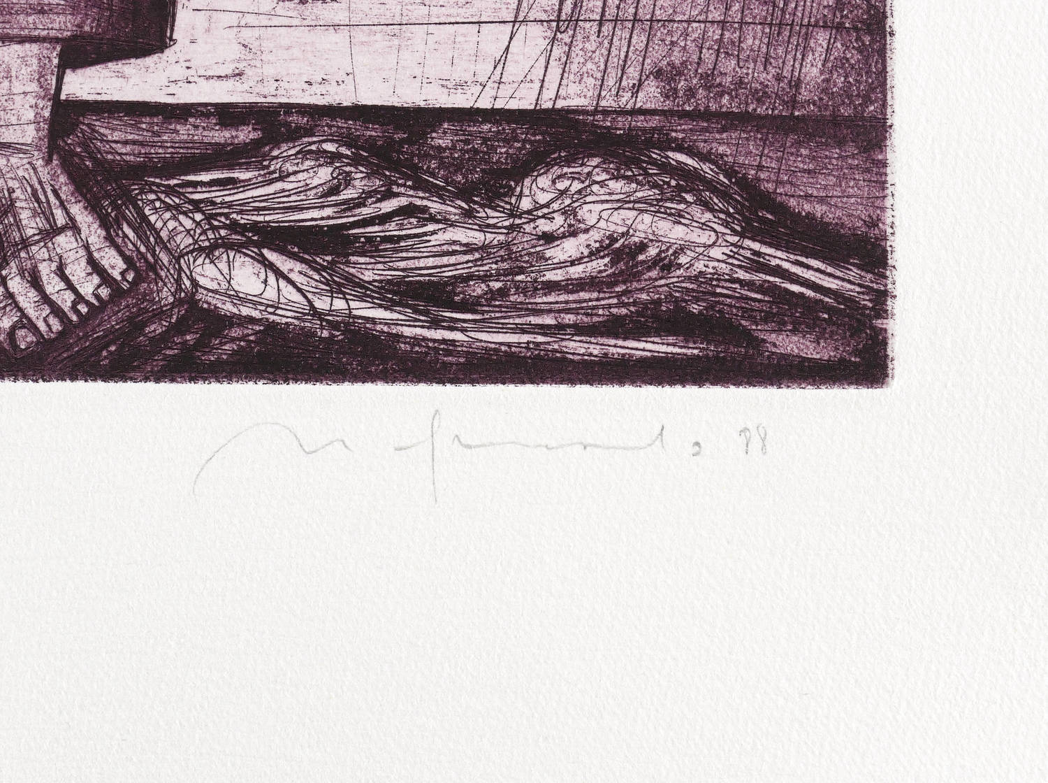 1988. Radierung / Aquatinta & Strichätzung, in Schwarzviolett, auf schwerem hellchamois Hahnemühle. – Originale Künstlergrafik, von Nuria Quevedo. – Auflage Exemplar Nr. XX/XXV. – 37,5 x 30,5 cm (Darstellung / Platte), 54 x 40 cm (Blatt).