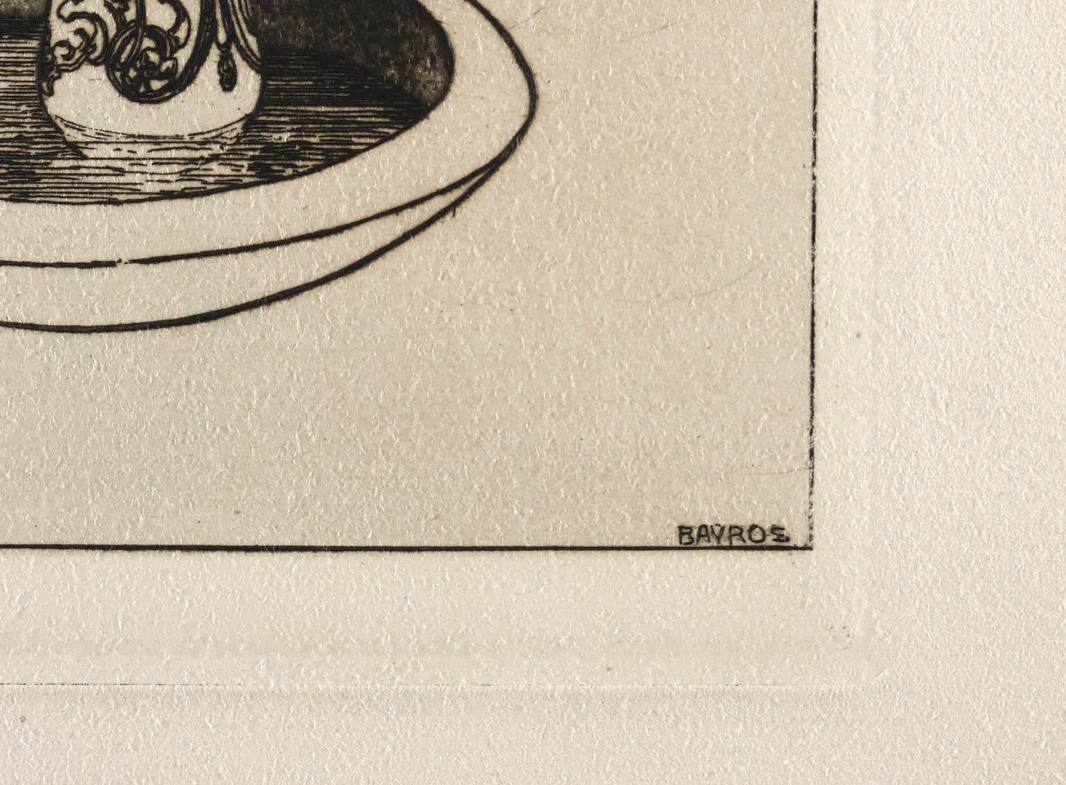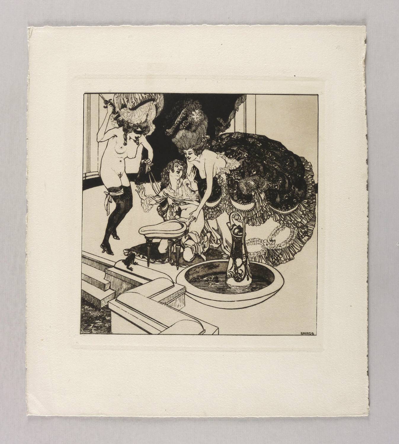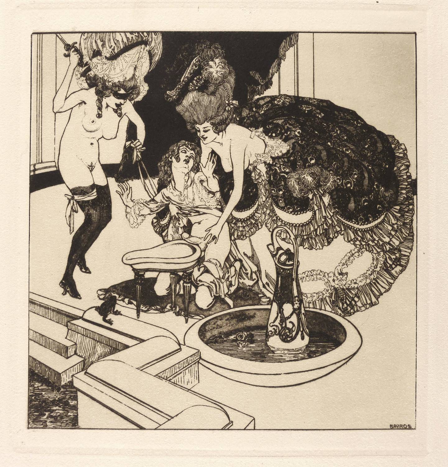 1907. Radierung / Aquatinta & Strichätzung, in Schwarzbraun, auf gelblichem Kupferdruckbütten. – Originale Künstlergrafik, von Franz von Bayros. – Auflage 530 Exemplare. – 21,0 x 20,4 cm (Darstellung / Einfassungslinie), 24,0 x 22,2 cm (Platte), 34 x 30 cm (Blatt).
