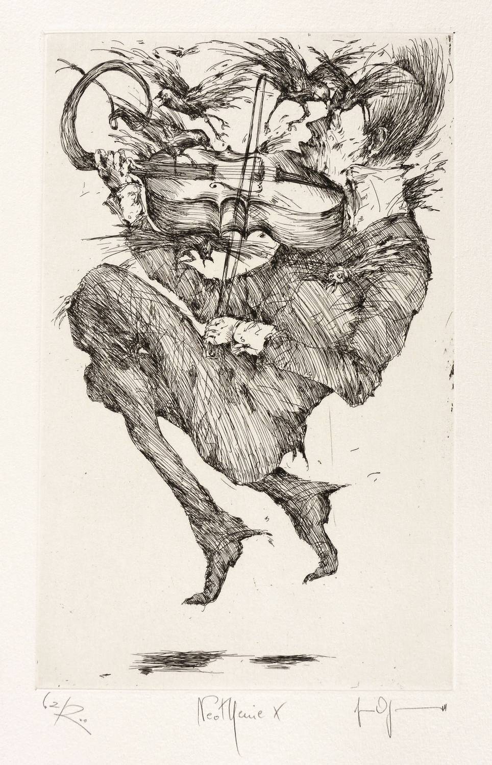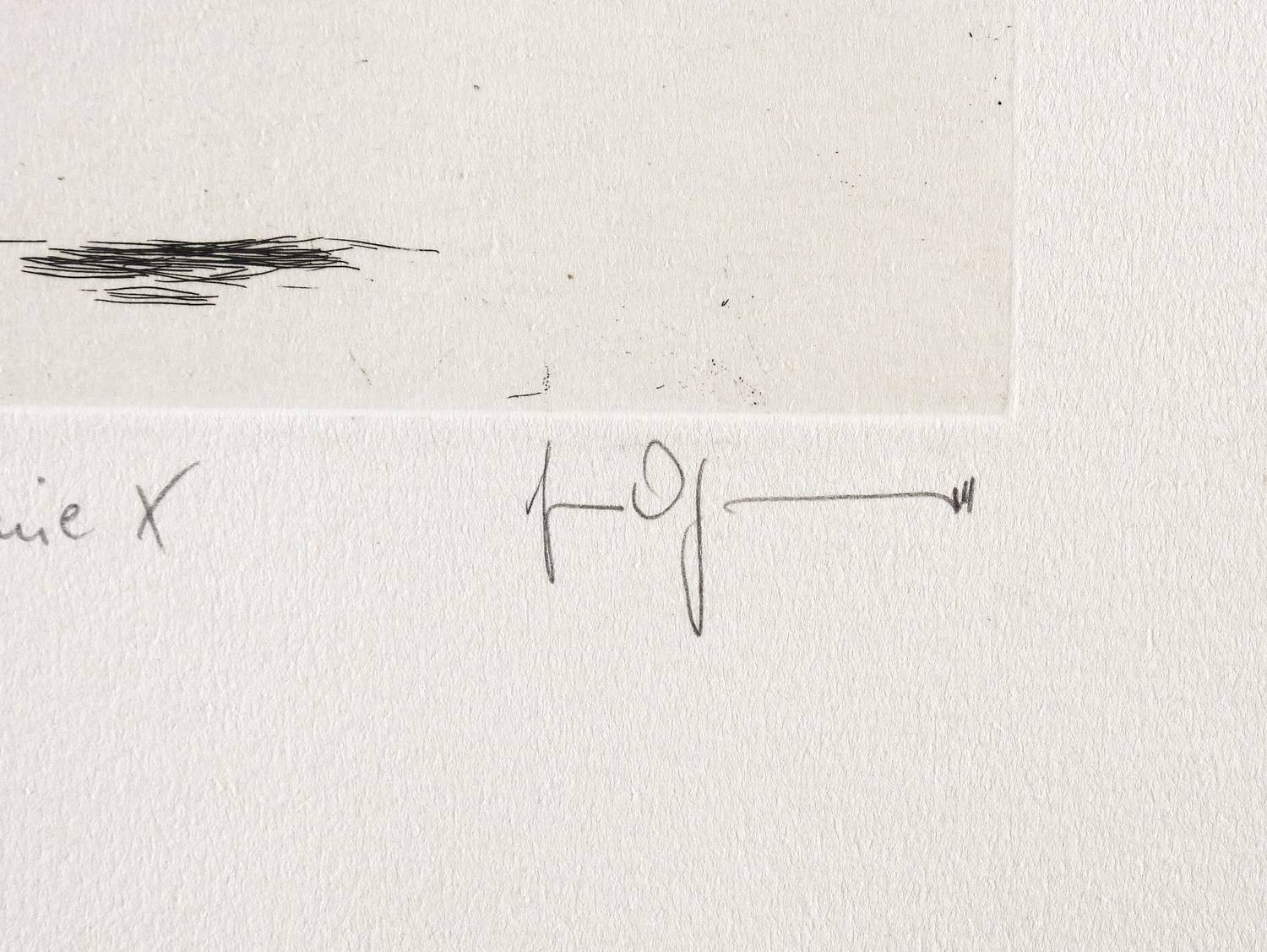 1986. Radierung / Strichätzung, in Schwarz, auf kräftigem hellchamois Hahnemühle. – Originale Künstlergrafik, von Gertrude Degenhardt. – Auflage Exemplar Nr. 86/200. – 27,1 x 17,2 cm (Darstellung / Platte), 40 x 30 cm (Blatt).