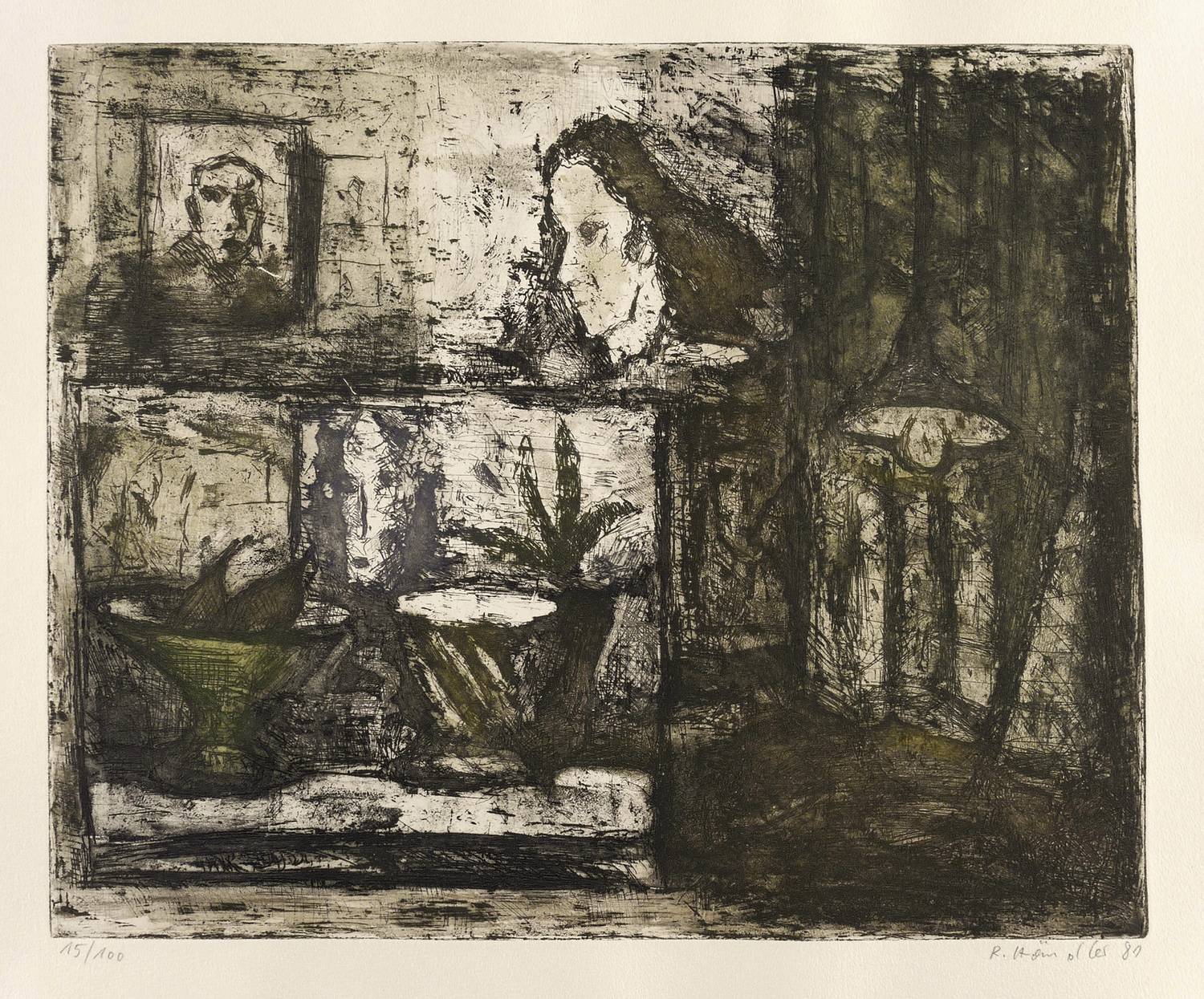 1981. Farbradierung / Strichätzung & Aquatinta, in Grün, Violett & Schwarz, auf chamois Hahnemühle. – Originale Künstlergrafik, von Rolf Händler. – Auflage Exemplar Nr. 15/100. – 32,3 x 39,3 cm (Darstellung / Platte), 40 x 53 cm (Blatt).