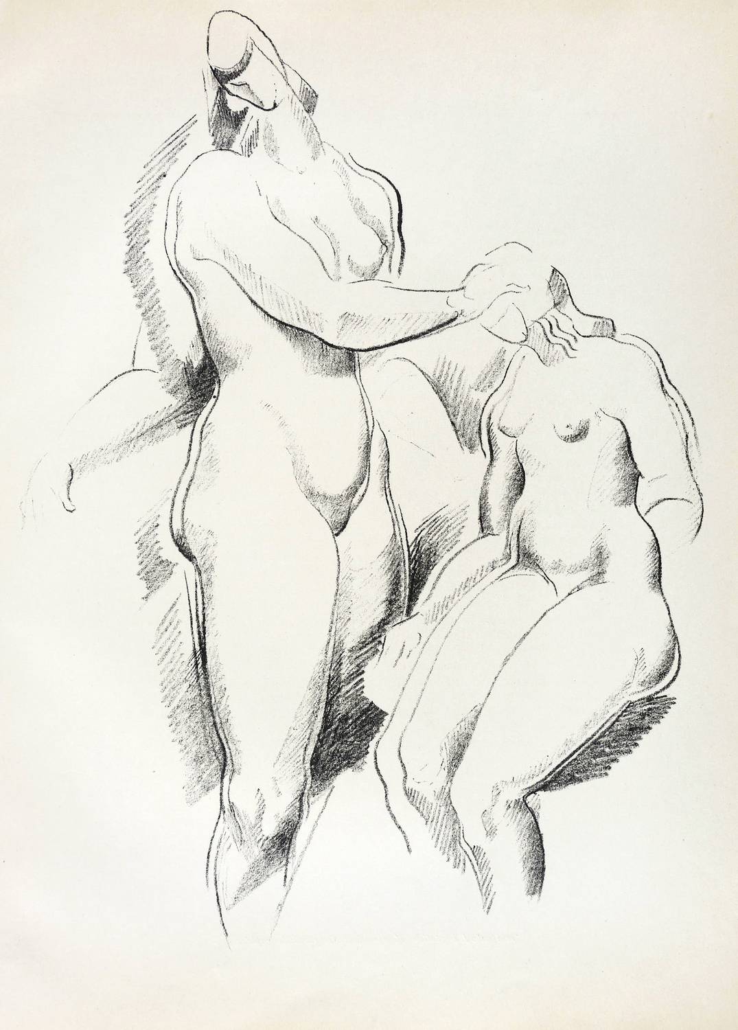 1920. Lithografie / Kreidelithografie, in Schwarz, auf gelblichem Maschinenpapier. – Originale Künstlergrafik, von Alexander Archipenko. – 30,5 x 22,2 cm (Darstellung / Druckbild), 35 x 26 cm (Blatt).