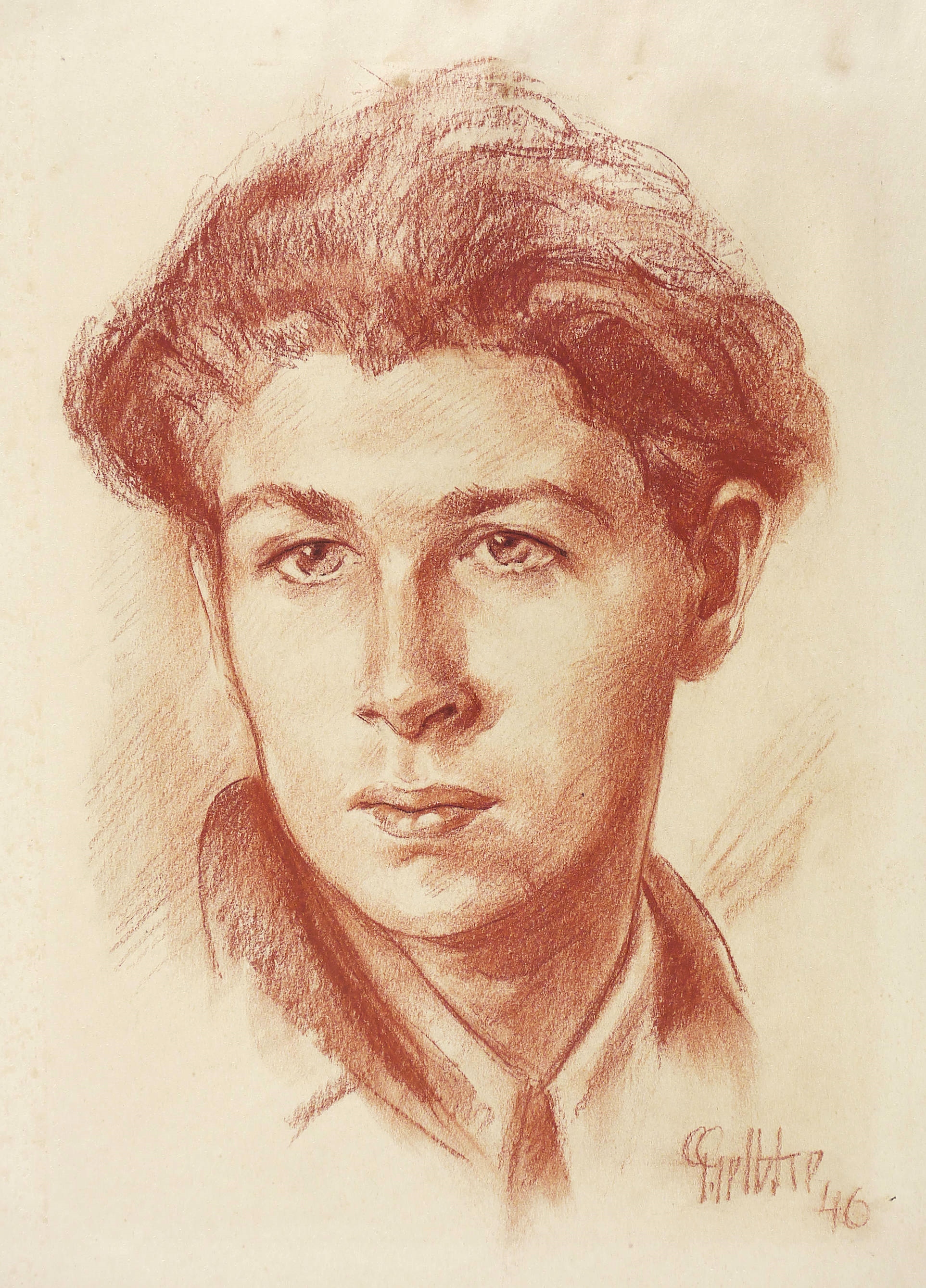 1946. Zeichnung / Rötelkreide, auf gelbem Karton. – Originale Künstlergrafik, von Georg Gelbke. – Unikat. – 39,0 x 31,0 cm (Darstellung / Blatt).