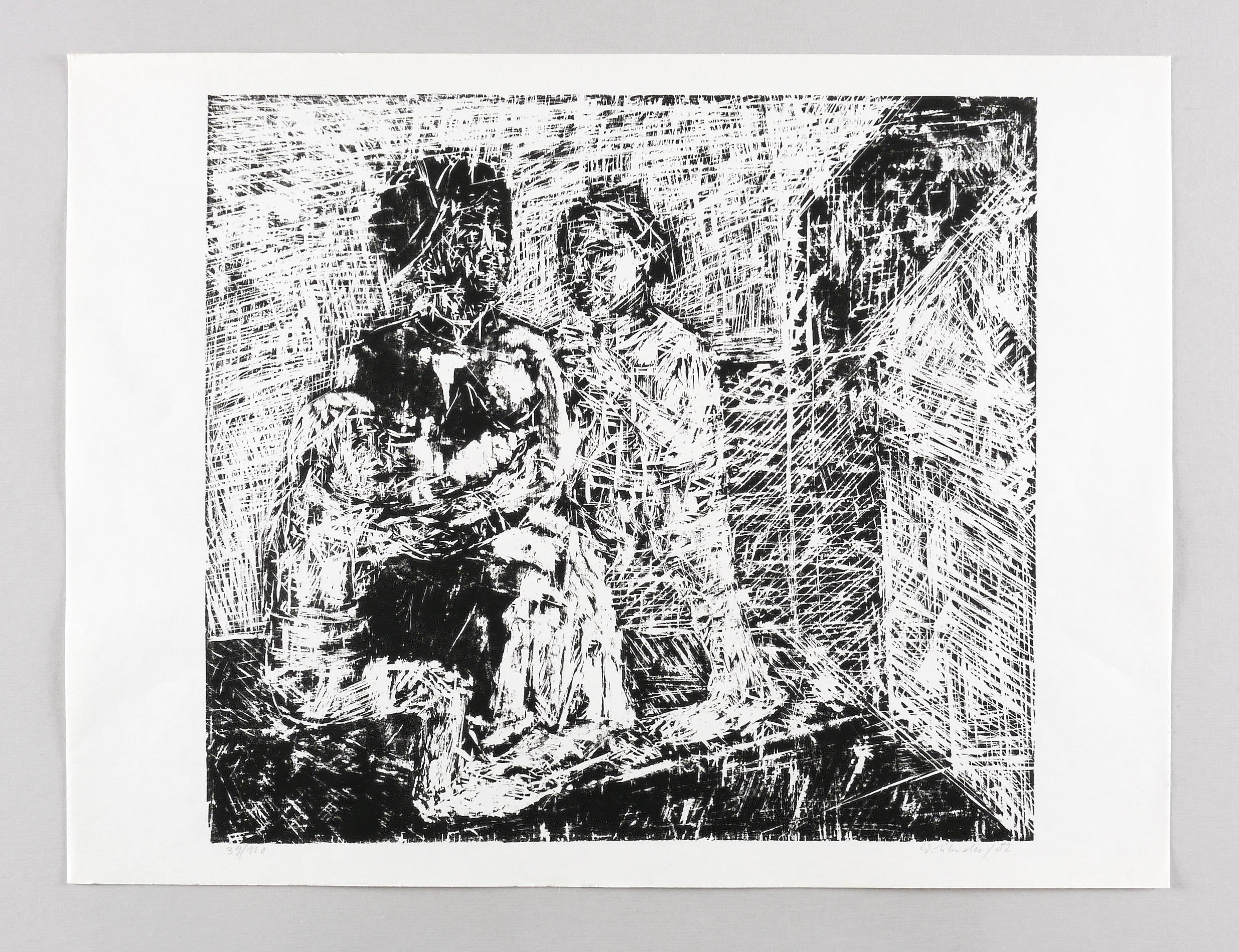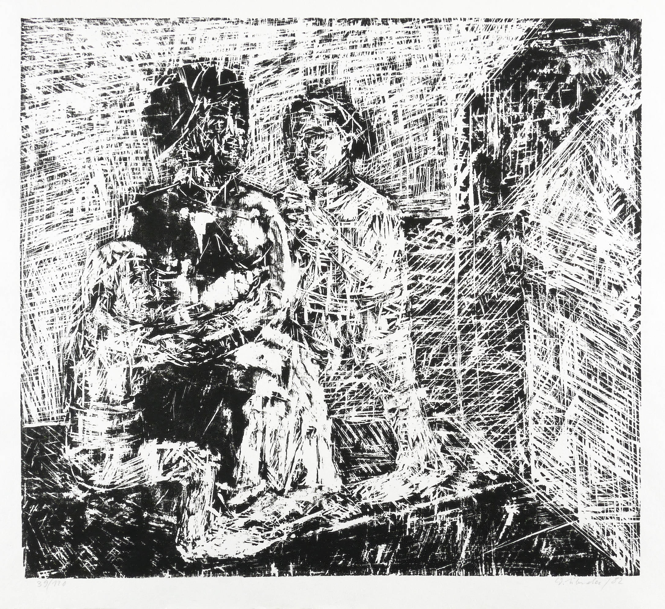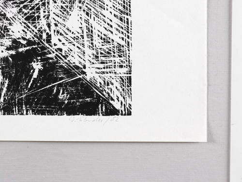 1982. Holzschnitt, in Schwarz, auf leichtem hellchamois Velin. – Originale Künstlergrafik, von Walter Libuda. – Auflage Exemplar Nr. 39/100. – 35,9 x 39,8 cm (Darstellung / Druckbild), 40 x 53 cm (Blatt).
