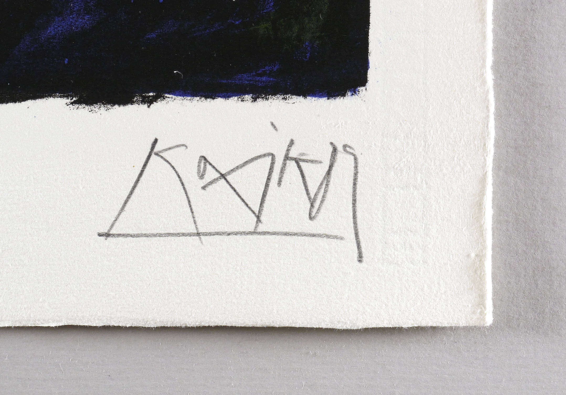 Rechts unten in Bleistift signiert und datiert: ″Kozik 89″. Links Auflagenbezeichnung: ″XXV/XXV″. Mittig Titel: ″Vollendung″. Wasserzeichen der Hahnemühle. – Sehr gut erhalten.