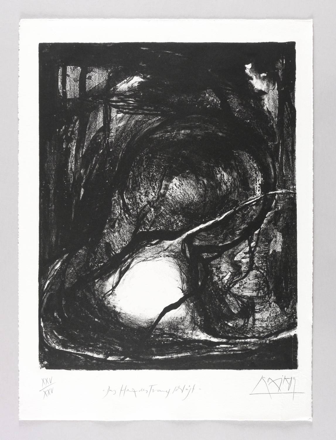 1989. Lithografie / Pinsellithografie, in Schwarz, auf hellchamois Hahnemühle. – Originale Künstlergrafik, von Gregor Torsten Kozik. – Auflage Exemplar Nr. XXV/XXV. – 43,6 x 34,3 cm (Darstellung), 54 x 40 cm (Blatt).