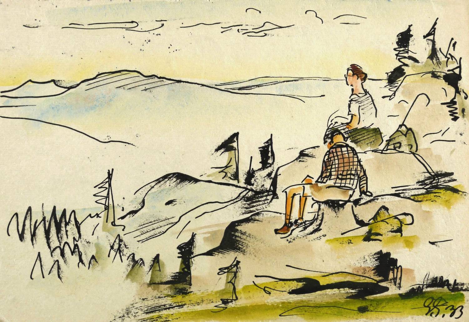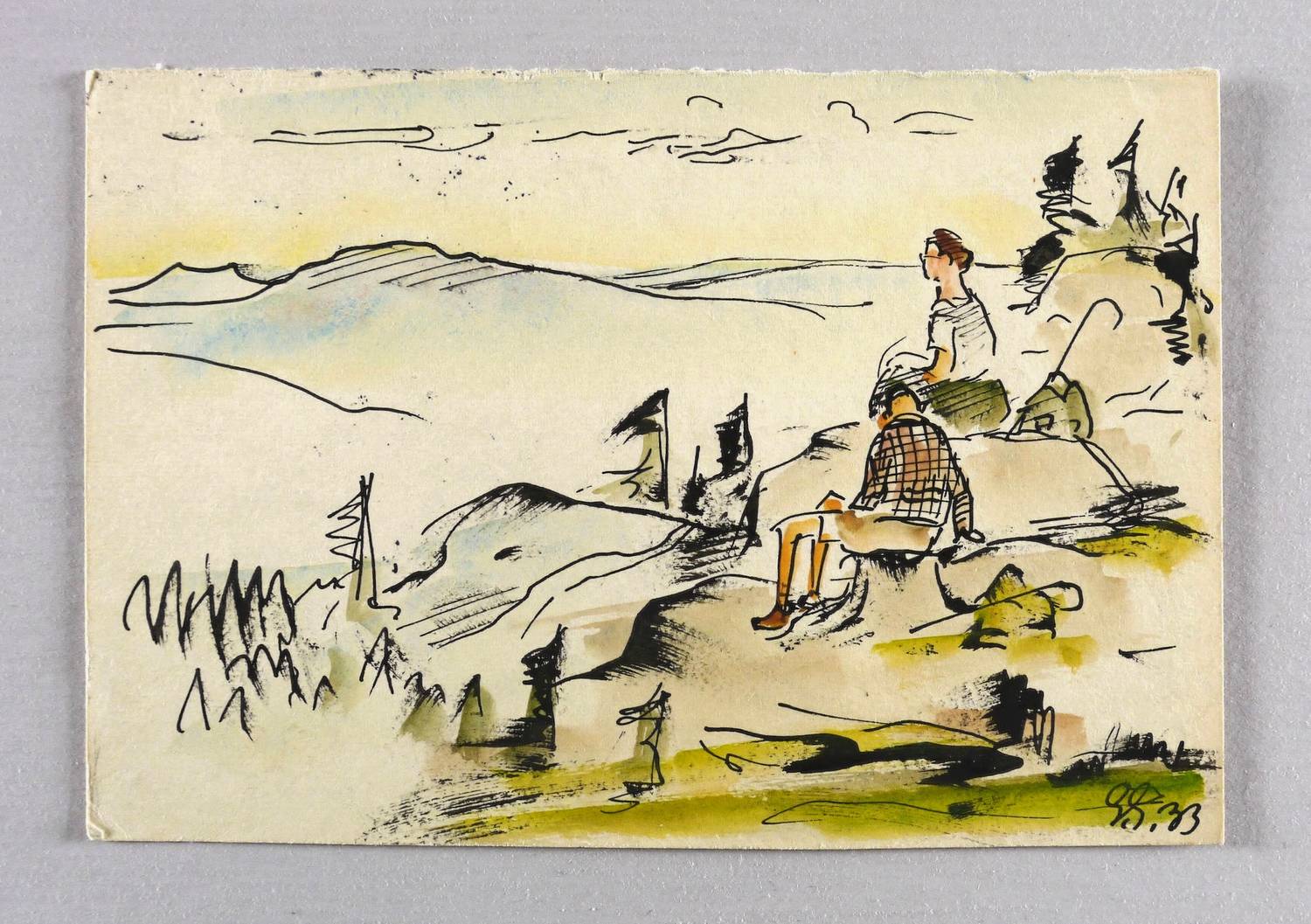 Rechts unten in schwarzer Feder signiert und datiert: ″G.G. 33″. Verso Schreiben an die Schwiegereltern Dr. Theodor Arndt und Frau in Dresden: ″M. Lieben, Dank f. d. Karten. Hoffentl. erreicht Euch diese noch. (...)″. Poststempel vom 15. September 1933 in Železná Ruda (Tschechien). – Provenienz: Dresdner Privatbesitz, ehemals Sammlung Dr. Theodor Arndt, Dresden- Blasewitz (Vater der Ehefrau des Künstlers Coelestine). – Sehr guter Zustand.