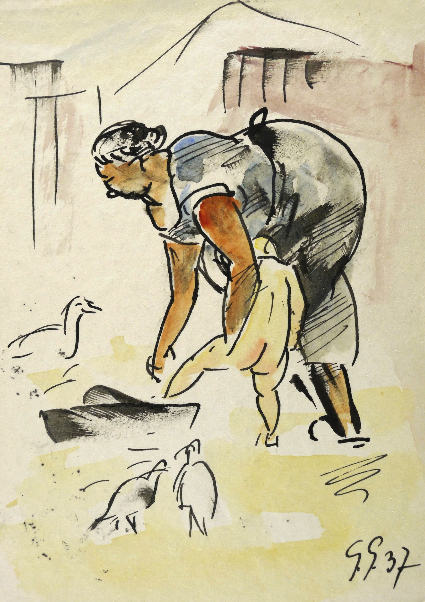 Rechts unten in schwarzer Feder signiert und datiert: ″G.G. 37″. Verso Schreiben mit Geburtstagsgruß an Marianne Arndt in Dresden. Poststempel vom 17. September 1937 in Rossitten (Kurische Nehrung). – Provenienz: Dresdner Privatbesitz, ehemals Sammlung Dr. Theodor Arndt, Dresden- Blasewitz (Vater der Ehefrau des Künstlers Coelestine). – Sehr guter Zustand.