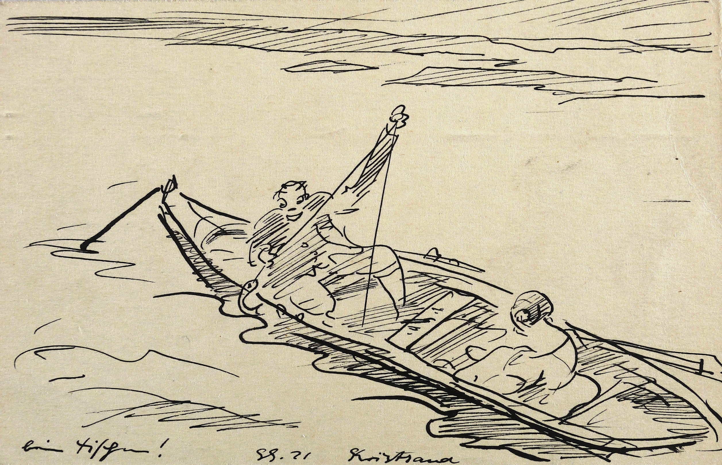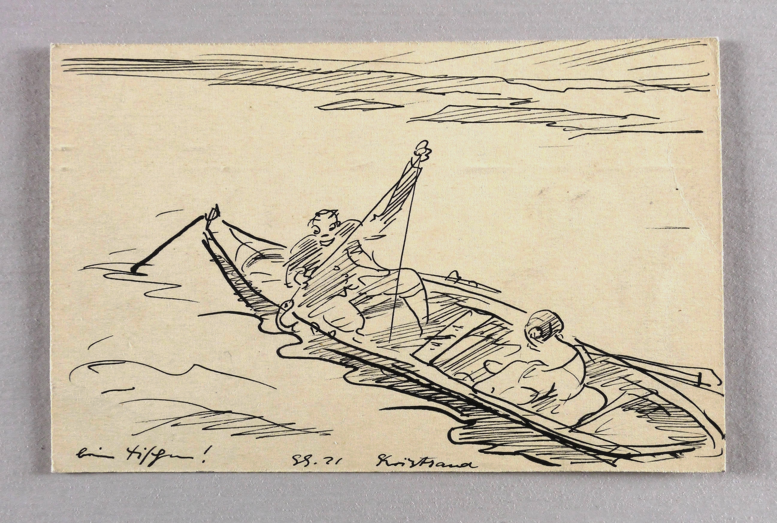Links unten in schwarzer Feder bezeichnet, signiert und datiert: ″Ein Fischlein! // GG. 21 Kristsand [?]″. Verso Kartengruß von Coelestine Gelbke an ihre Eltern Dr. Theodor Arndt und Frau in Dresden-Blasewitz. – Provenienz: Dresdner Privatbesitz, ehemals Sammlung Dr. Theodor Arndt, Dresden- Blasewitz (Vater der Ehefrau des Künstlers Coelestine). – Sehr guter Zustand.