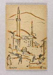 Rechts unten in schwarzer Feder signiert und datiert: ″G.G. 24″. Links bezeichnet: ″Sarajevo″. Verso Schreiben von Coelestine Gelbke an die Eltern Dr. Theodor Arndt und Frau in Dresden: ″II // Zille könnte hier Material sammeln für neue Zoten. Mein Haase läßt Euch herzlich grüßen u. auch seinerseits den tiefgefühlten Dank seiner Künstlerseele zu Füßen legen. 'Dobar dan' sagt er mit Zungen-R wie ein Alter u. es kann dan´bei keiner ihm den Deutschen noch den Sachsen anmerken. Mein Italienisch hat mich hier gerettet, - es wäre sonst ganz [...] gewesen. [...]″ – Provenienz: Dresdner Privatbesitz, ehemals Sammlung Dr. Theodor Arndt, Dresden- Blasewitz (Vater der Ehefrau des Künstlers Coelestine). – Sehr guter Zustand.