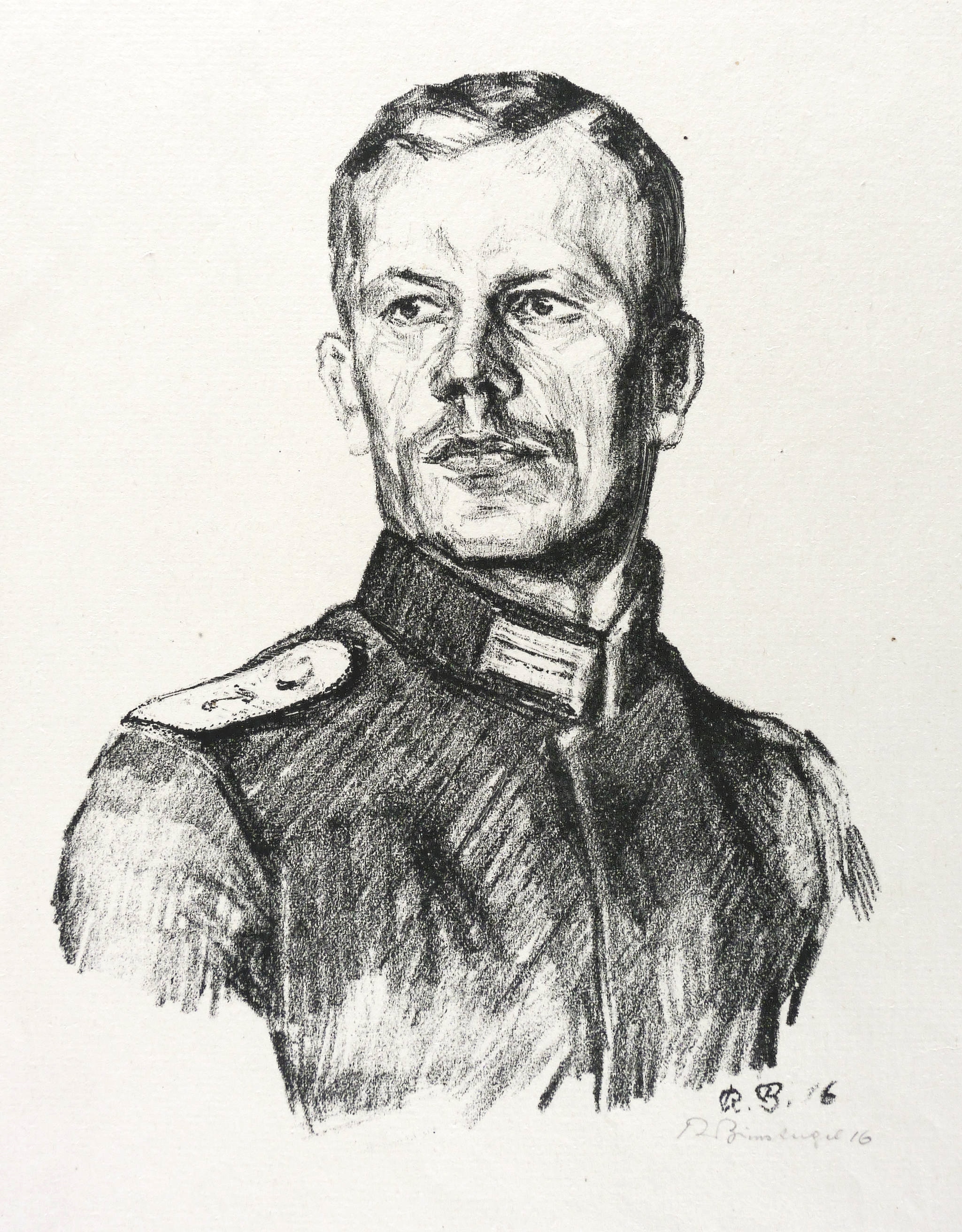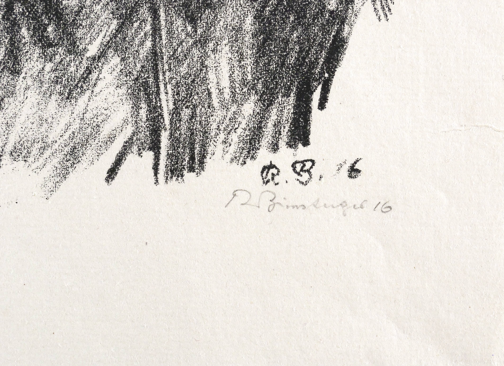 Rechts unten in Bleistift signiert: ″R. Birnstengel 16″. Im Stein rechts unten Signatur und Jahr: ″R.B. 16″. – Sehr guter Zustand.