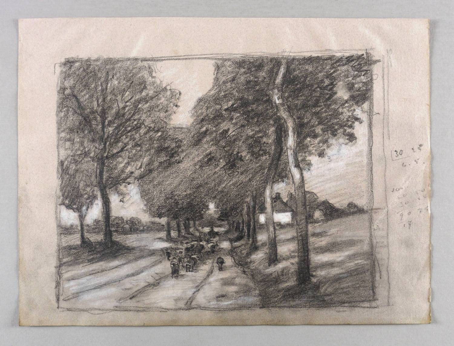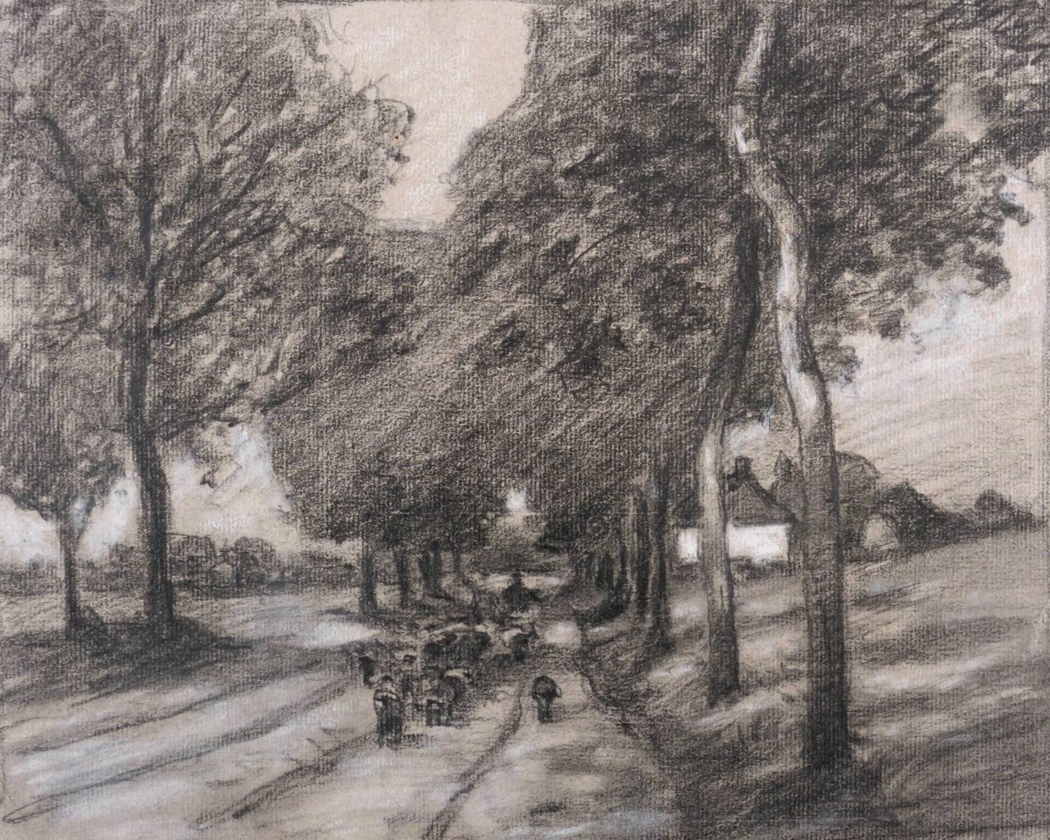 1903. Zeichnung / Graphitzeichnung, mit weißer Kreide gehöht, auf blassrosa VD&T-Bütten. – Originale Künstlergrafik, von Deutsch (20. Jh.). – Unikat. – 29 x 38 cm (Blatt), 23,5 x 29,0 cm (Darstellung).
