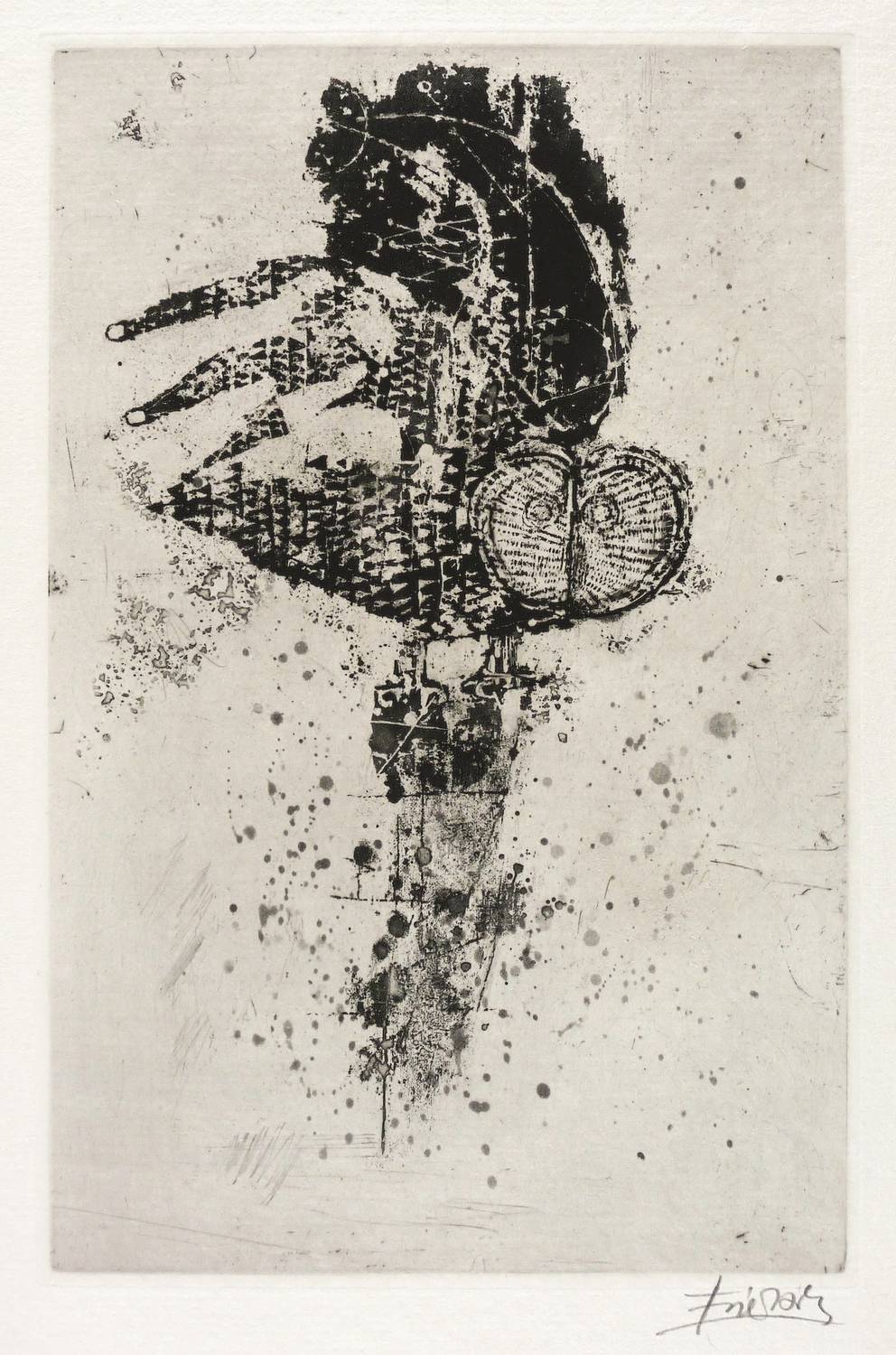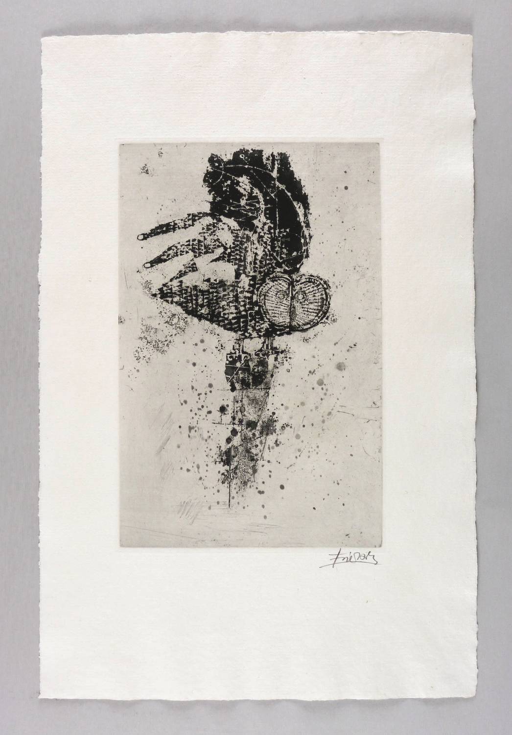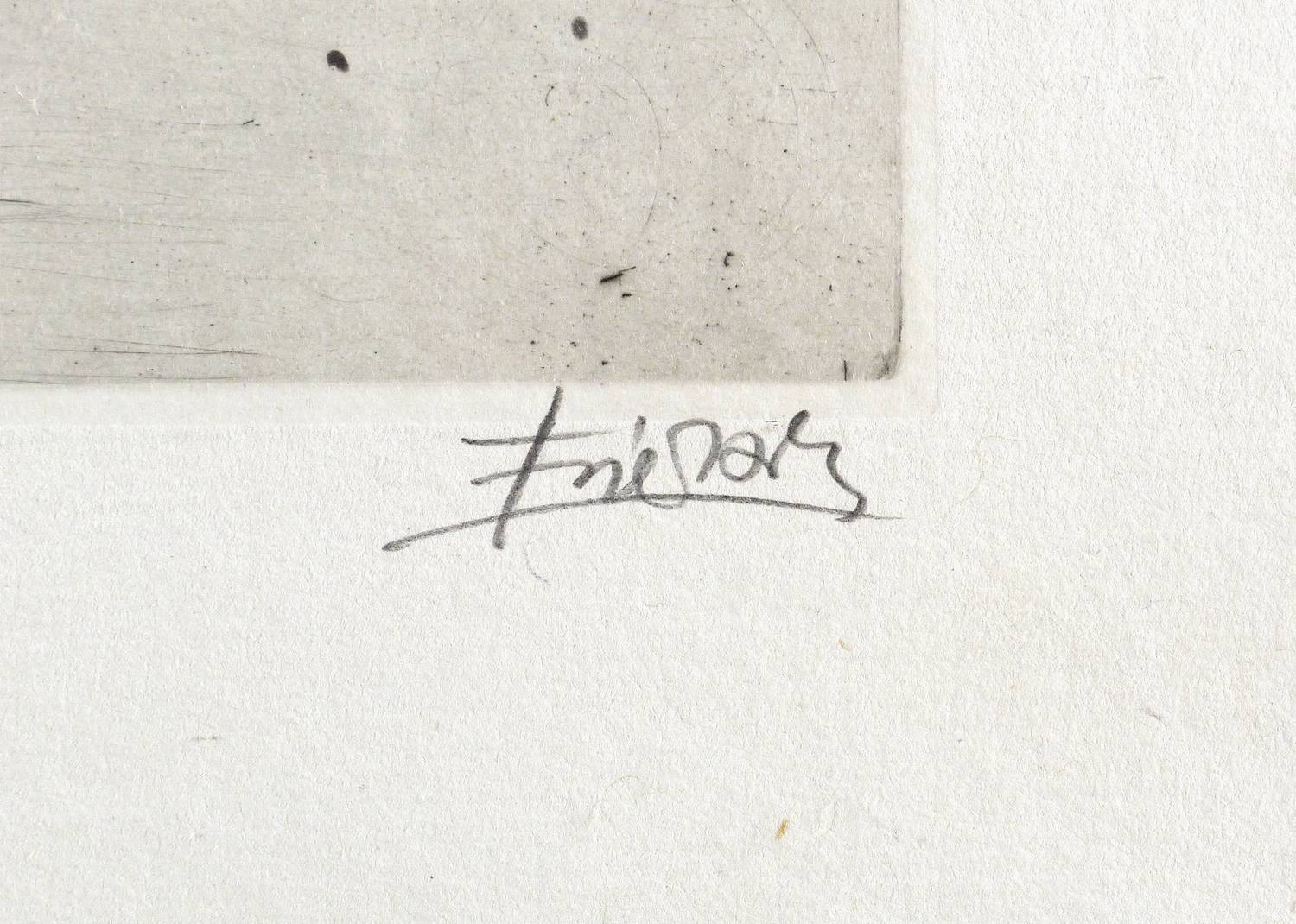 1963. Radierung / Aquatinta, in Schwarz, auf rauem hellchamois Auvergne. – Originale Künstlergrafik, von Johnny Friedländer. – Auflage 60 Exemplare. – 31,0 x 20,1 cm (Darstellung / Druckbild), 51 x 34 cm (Blatt), 31,8 x 20,7 cm (Platte).