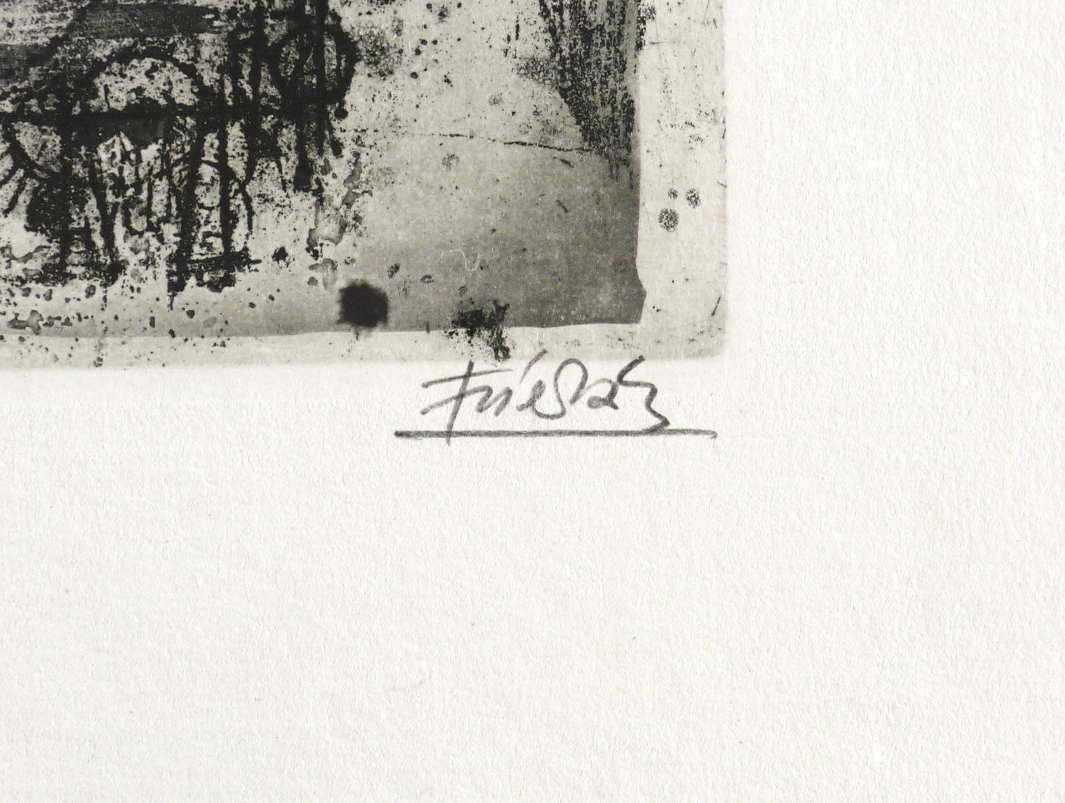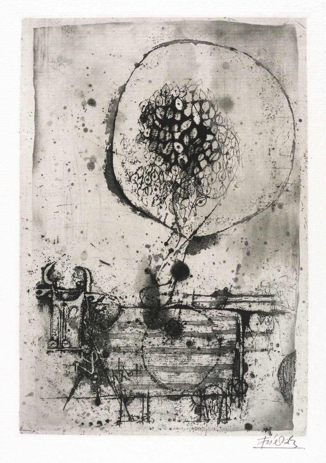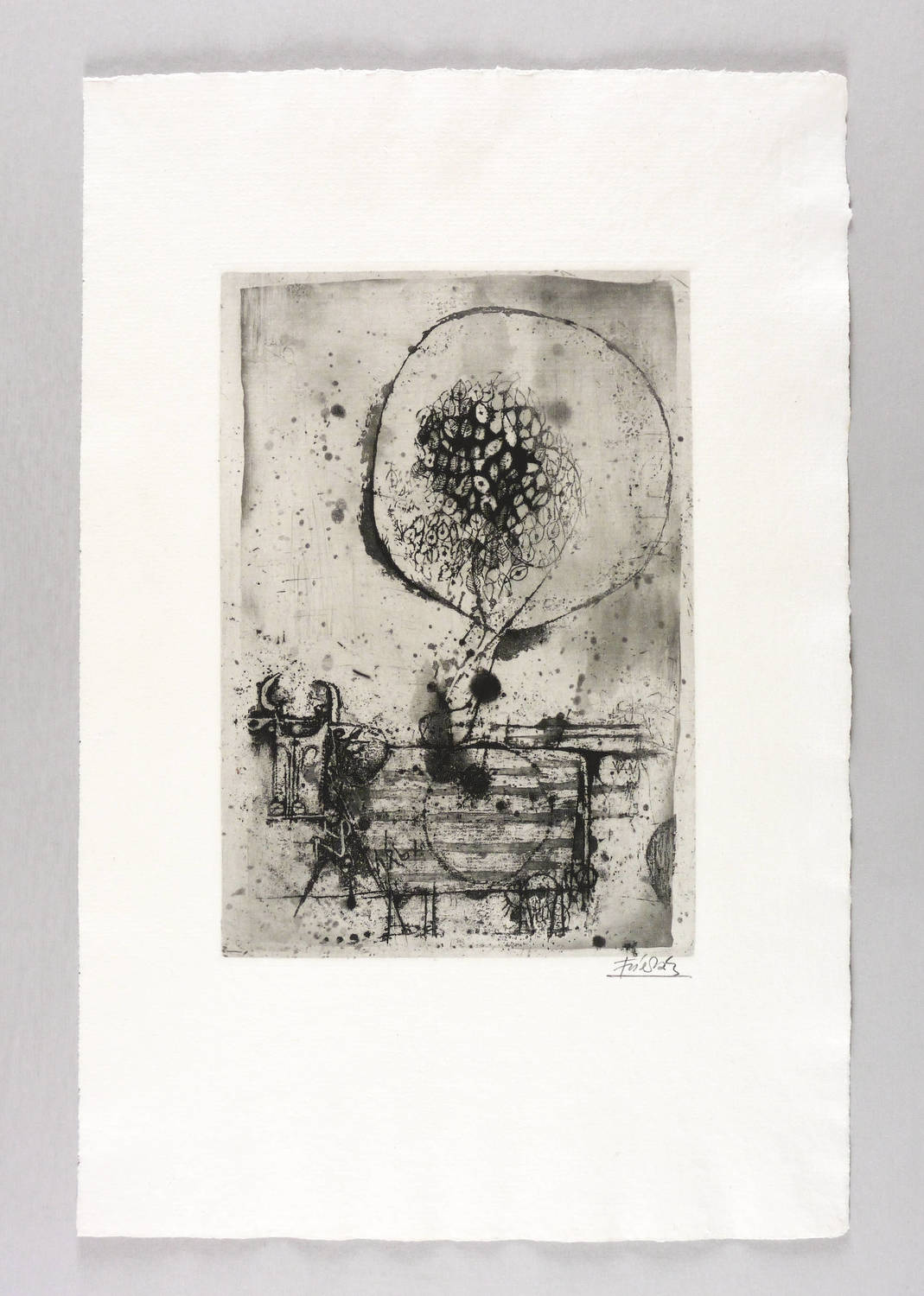 1963. Radierung / Aquatinta, in Schwarz, auf rauem hellchamois Auvergne. – Originale Künstlergrafik, von Johnny Friedländer. – Auflage 60 Exemplare. – 30,0 x 20,7 cm (Darstellung / Druckbild), 52 x 34 cm (Blatt), 30,8 x 21,4 cm (Platte).