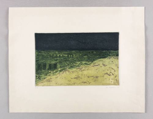 1979. Farbradierung / Aquatinta, in 5 Farben, auf hellchamois Weißenborn. – Originale Künstlergrafik, von Veit Hofmann. – Auflage Exemplar Nr. 6/10. – 17,7 x 28,0 cm (Darstellung / Platte), 35 x 45 cm (Blatt).