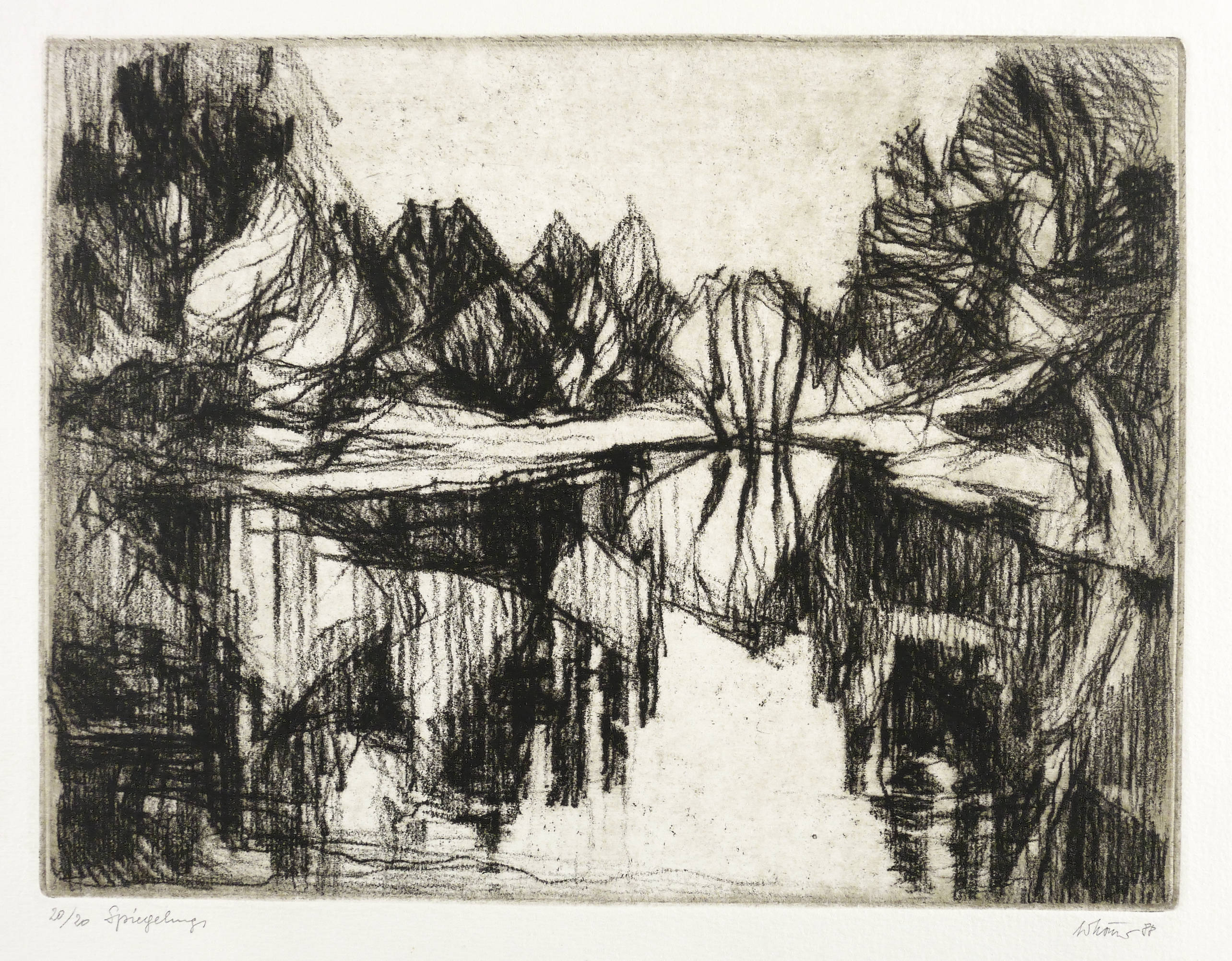1988. Radierung / Vernis mou, mit Plattenton, in Schwarz, auf hellchamois Velinkarton. – Originale Künstlergrafik, von Gottfried Körner. – Auflage Exemplar Nr. 20/20. – 22,5 x 29,7 cm (Darstellung / Platte), 28 x 42 cm (Blatt).