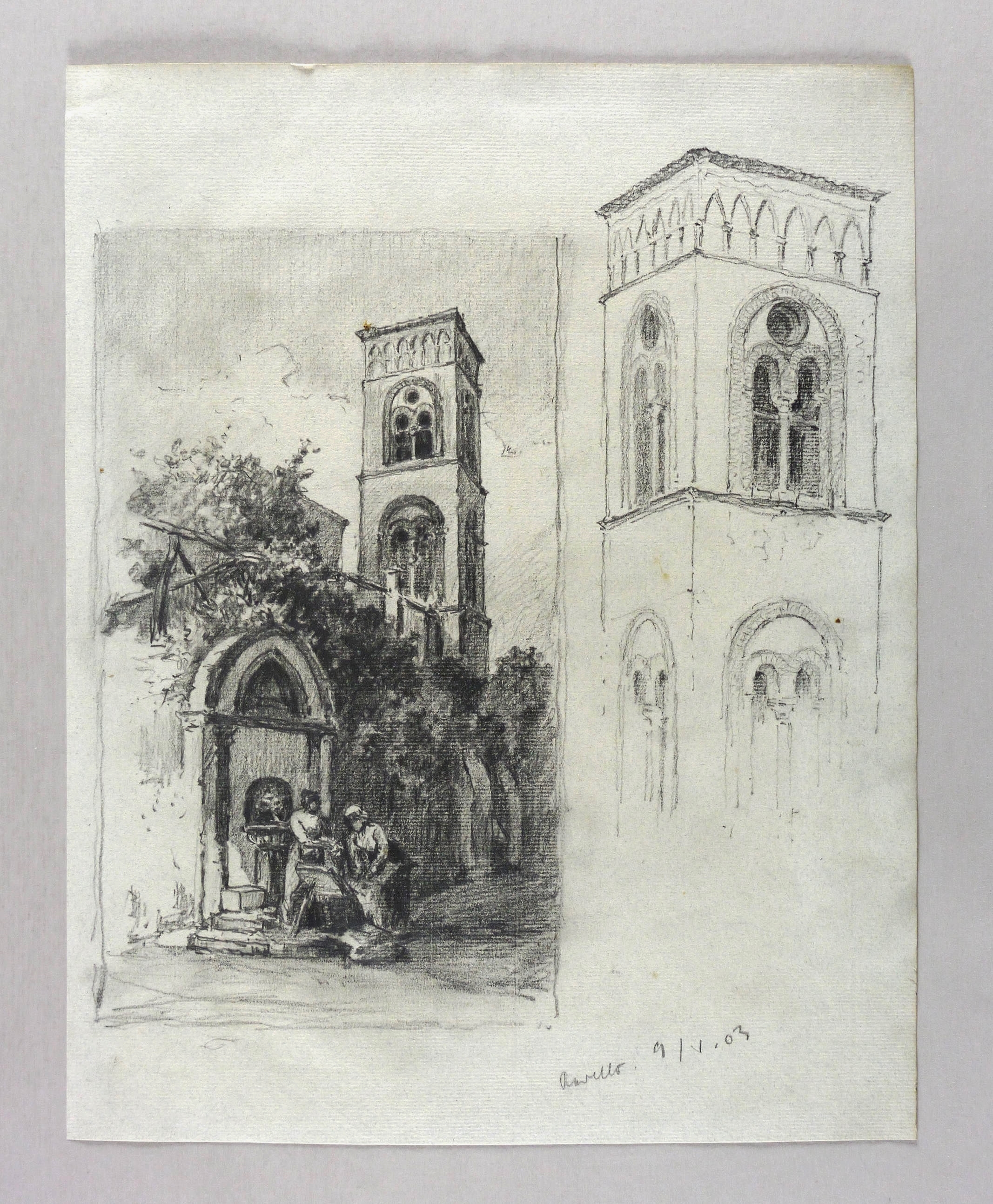 Deutscher Zeichner. – „Campanile der Kathedrale in Ravello (Amalfiküste)”.