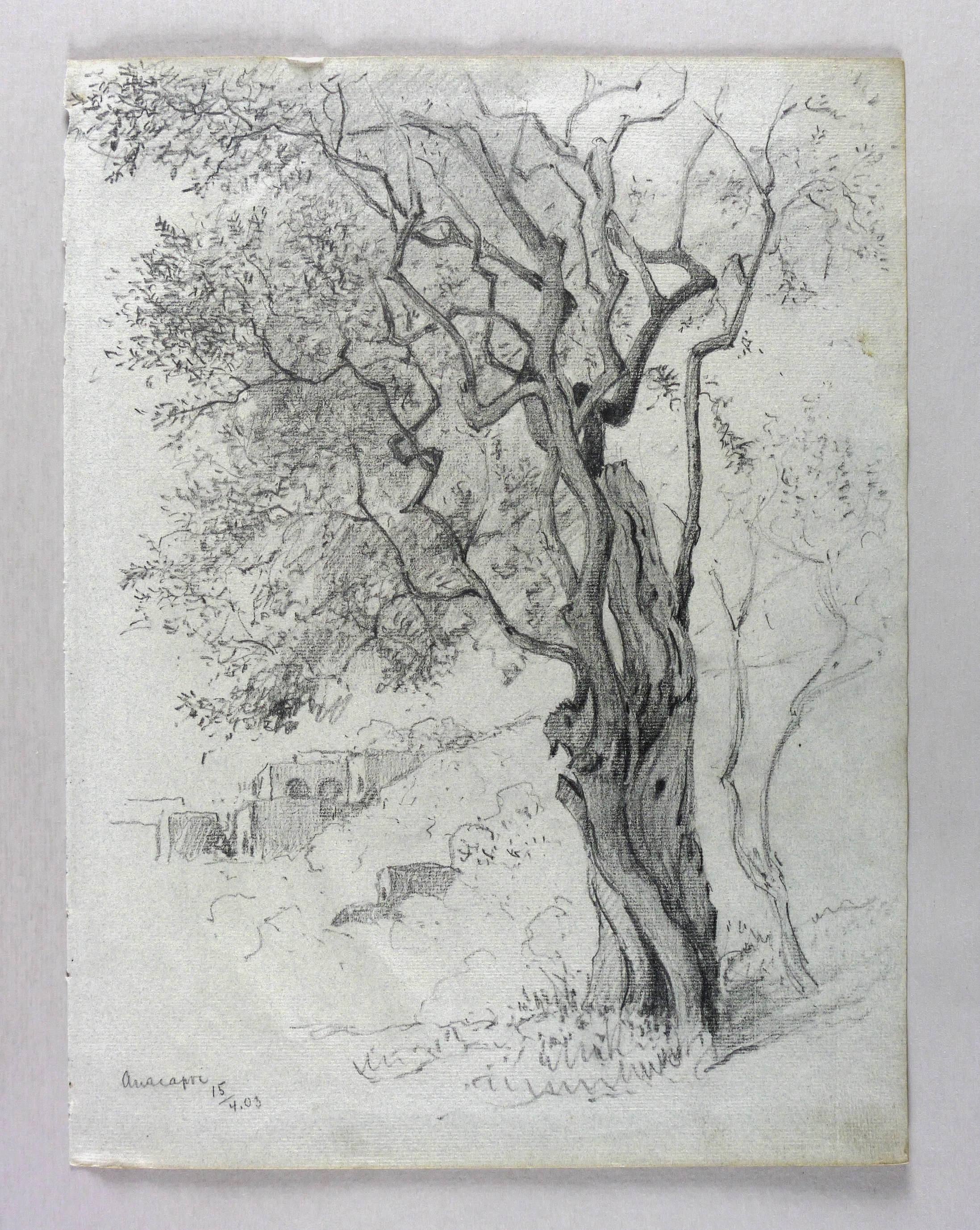 Rechts unten in Bleistift eigenhändig bezeichnet: ″Anacapri 15/4. 03″. Wasserzeichen: ″V D & T″. – Aus einem qualitätsvollen anonymen Skizzenbuch mit Zeichnungen aus Süditalien bei Capri und Nordholland aus dem Jahr 1903. – Sehr guter Zustand.