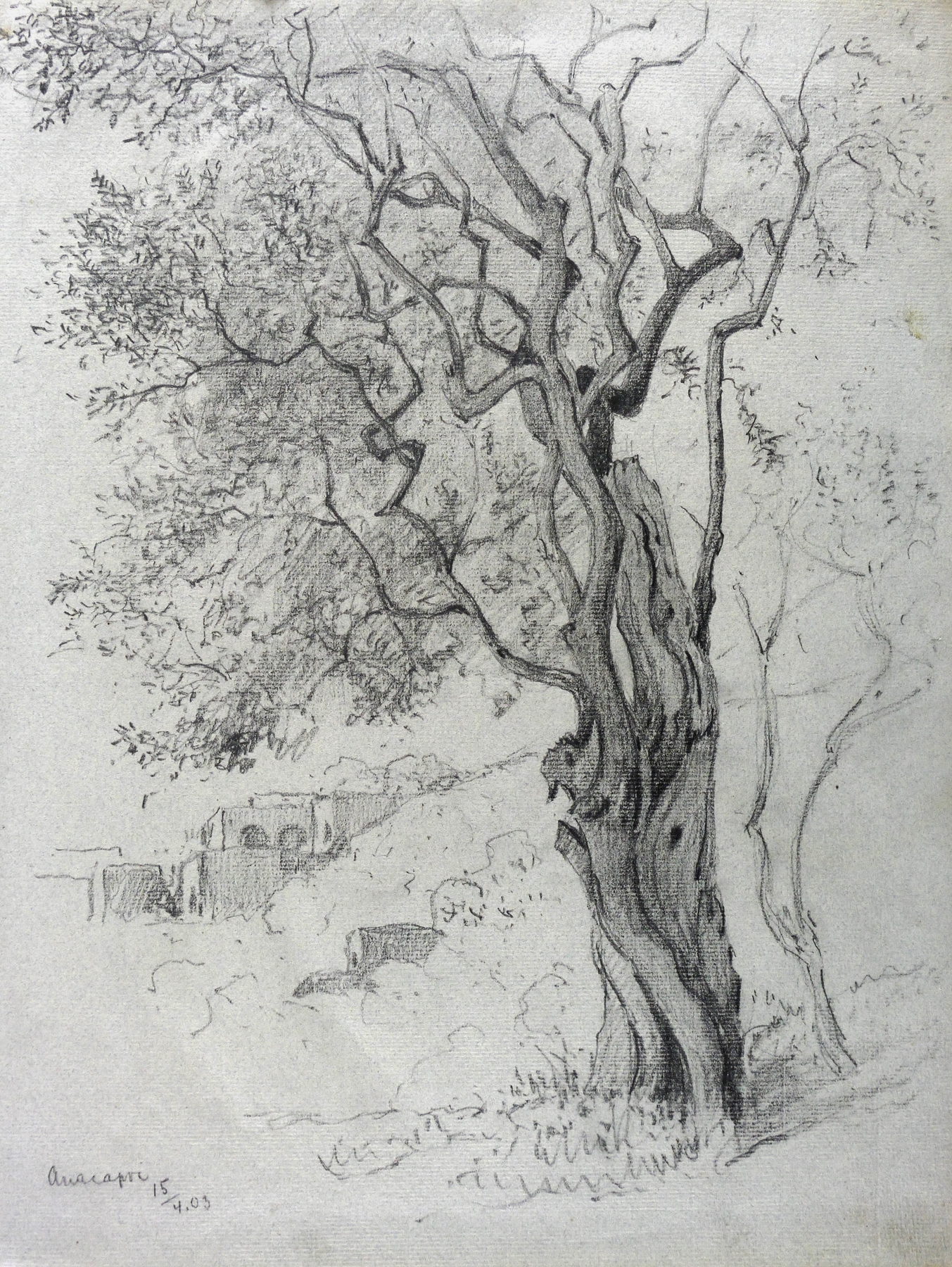 Deutscher Zeichner. – „Alter Ölbaum in Anacapri (Amalfiküste)”.