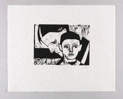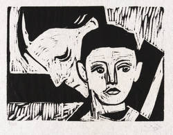 Um 1950. Holzschnitt, in Schwarz, auf weichem hellchamois Krepppapier. – Originale Künstlergrafik, von Wilhelm Lachnit. – Auflage Exemplar Nr. 5/100. – 18,7 x 25,8 cm (Darstellung / Druckbild), 41 x 50 cm (Blatt).
