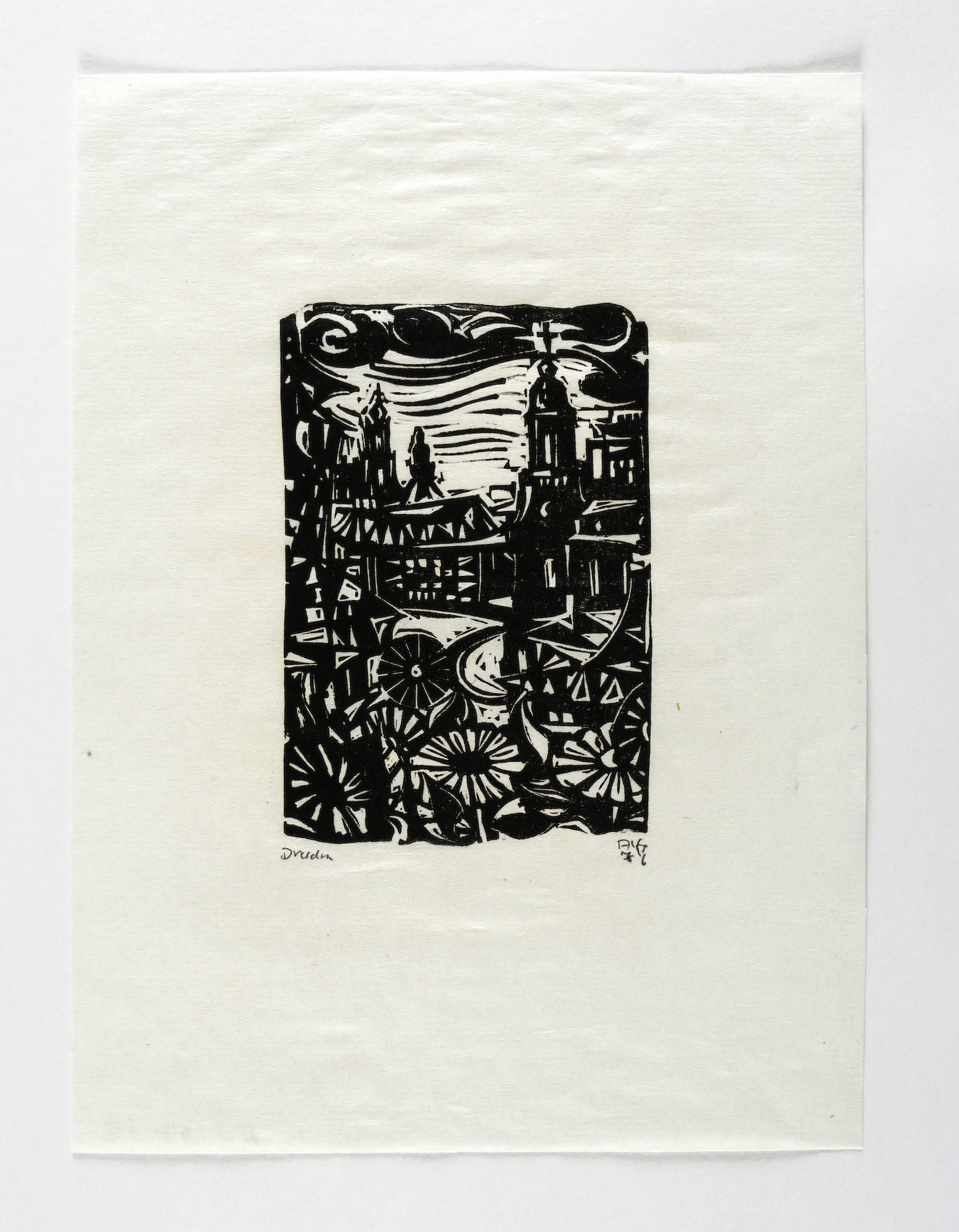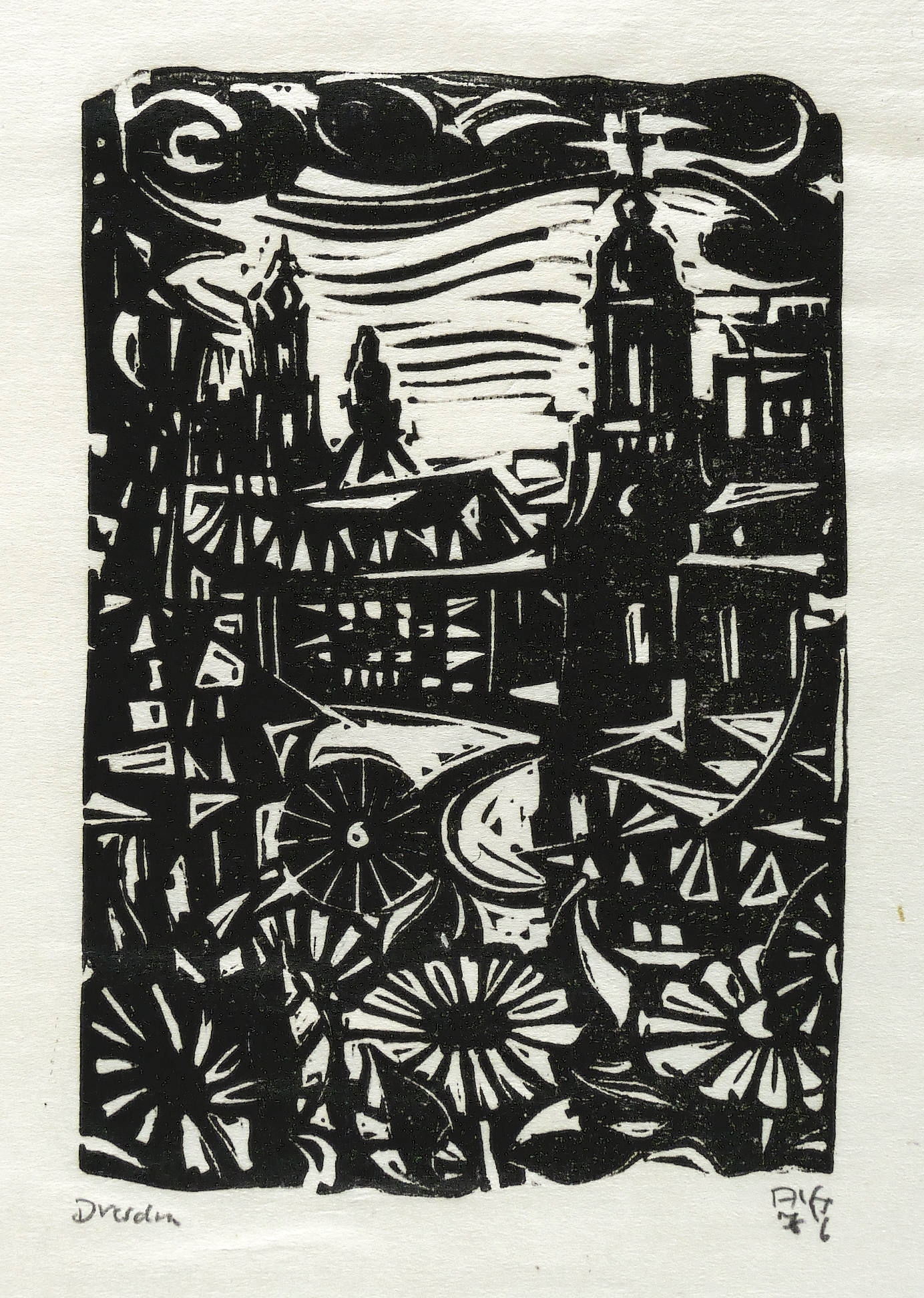 Rechts unten in Bleistift signiert und datiert: ″Alfs 76″. Links bezeichnet: ″Dresden″. – Im Vordergrund Blumenarragement. – Ohne Tadel. Sehr guter Zustand.