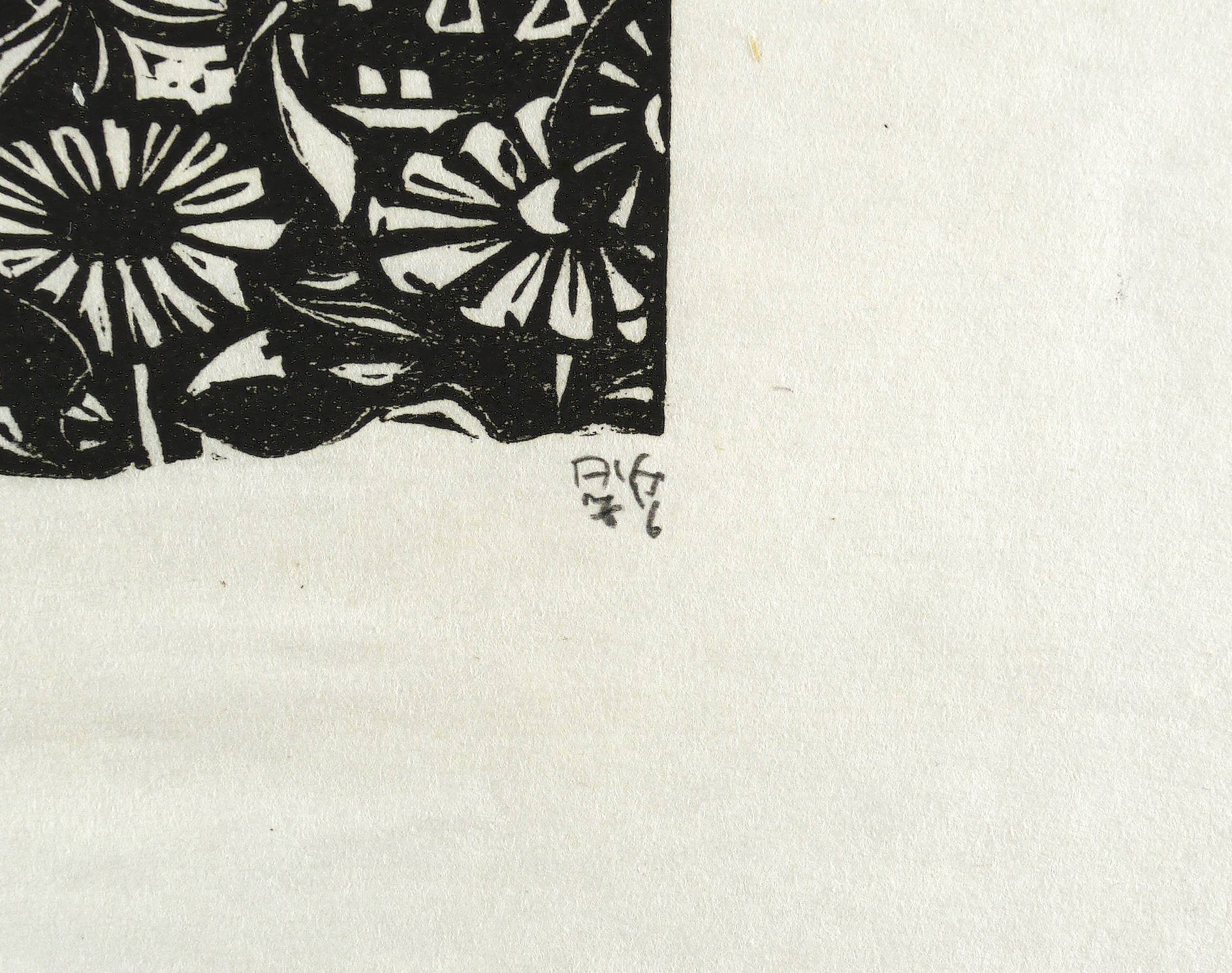 1976. Linolschnitt, in Schwarz, auf rauem weißlichem Similijapan. – Originale Künstlergrafik, von Alexander Alfs. – 14,4 x 9,6 cm (Darstellung / Druckstock), 29 x 21 cm (Blatt).